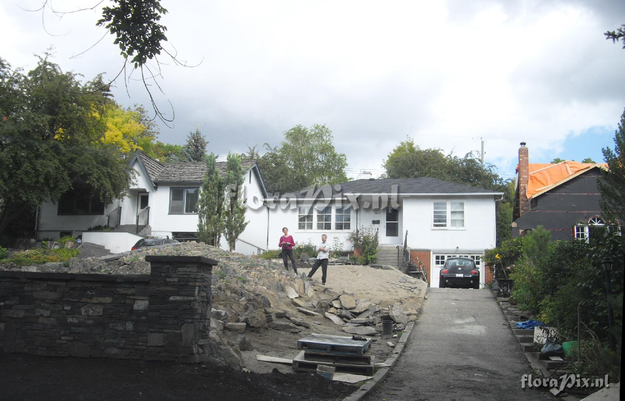 Note: View from street. Stephanie Ferguson and husband in rock garden under construction. Calgary, Alberta, September 10, 2010.