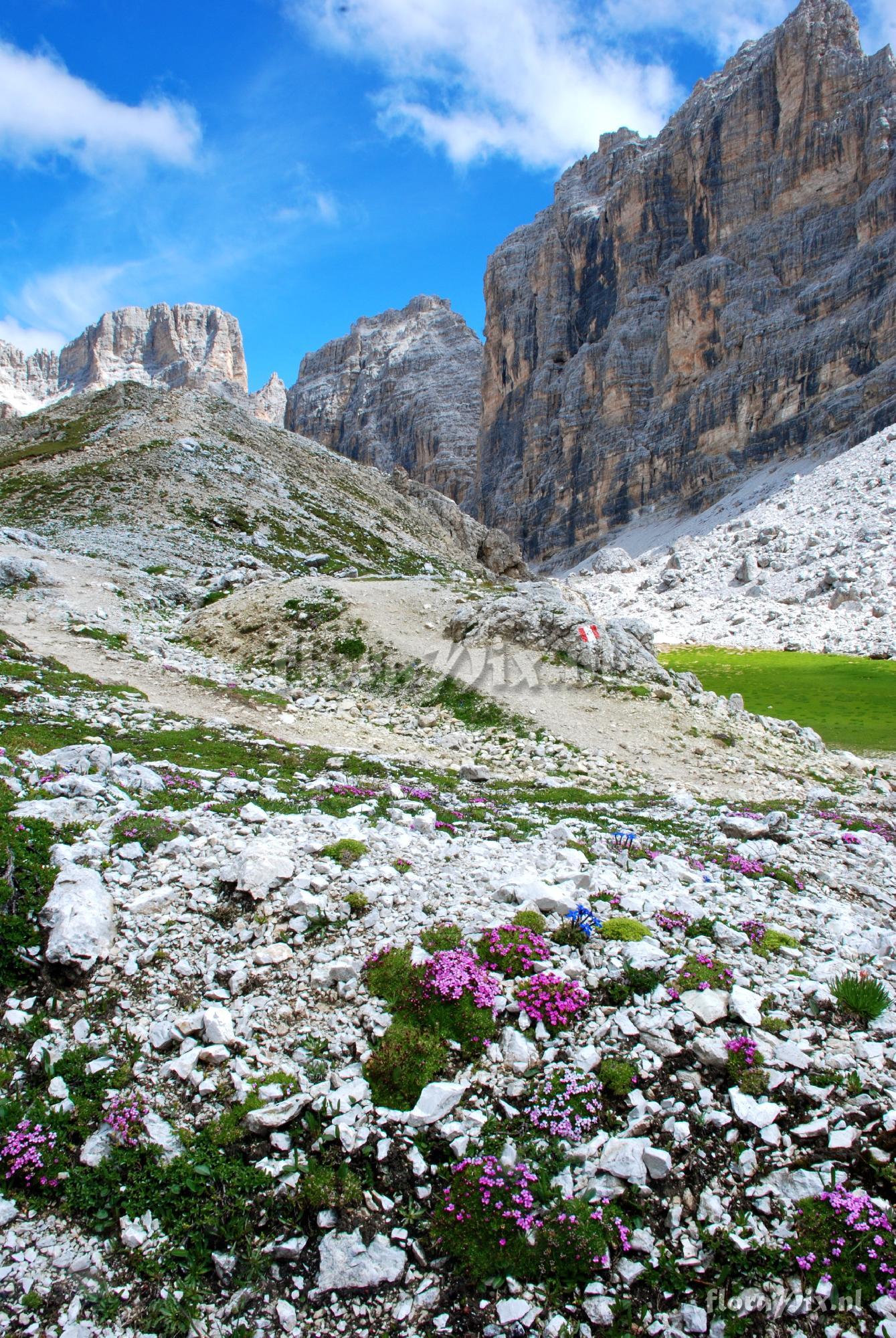 3399 - AlpenPix (Wild) - 2011-11-18(Dimension: 1369 x 2050 pixels - Counter: 6640) Silene acaulis cushions ![]() Locality: Italy - Falzarego, Italy Photographer: Cliff Booker Note: Silenes and gentians in the limestone detritus. (Sent: Alpine-l@science.uu.nl)