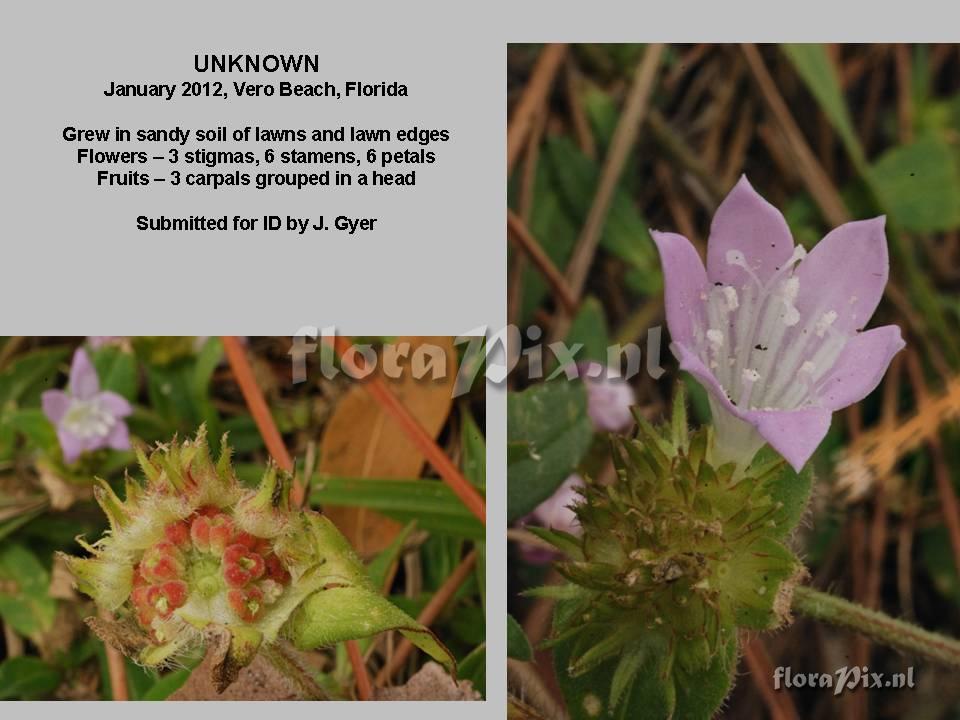 3452 - AlpenPix (Garden) - 2012-01-28(Dimension: 990 x 770 pixels - Counter: 4494) Unknown, ID needed ![]() Locality: United States - Florida - Vero Beach, Florida Lawns and lawn edges at Country Side Community Photographer: John Gyer Note: Grew in well drained sandy soil with moderate humus content - particularly in the top2 inches. The plant spread from a tap root at least 8 inches long on mature plants. The plants withstood mowing and flowered at a height of about 2 to 3 inches. In lawn edge areas the plants were about a foot to 18 inches high - open spreading. (Sent: Alpine-l@science.uu.nl) Identification: asked