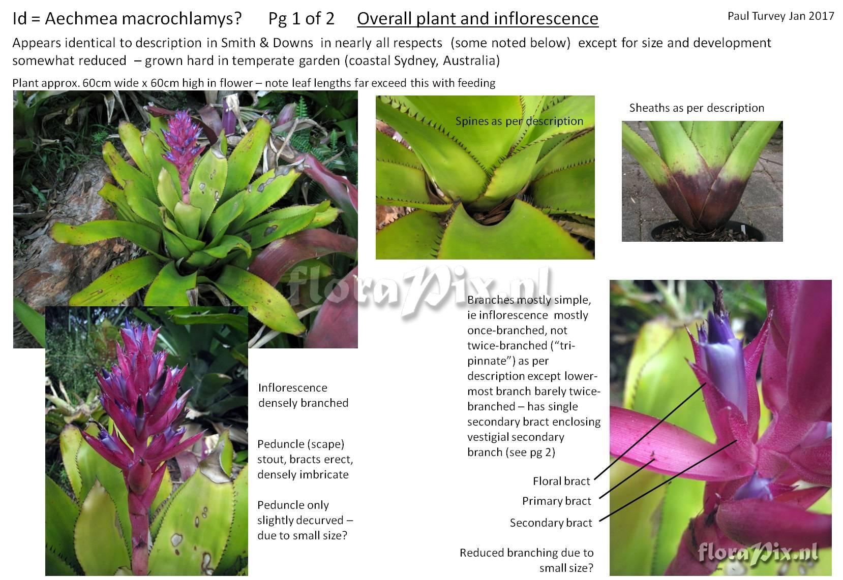 Verzamel locatie: Australia - NSW - In garden, coastal Sydney Fotograaf: Paul Turvey Opmerking: Seems to fit Aechmea macrochlamys pretty well, but would like confirmation of ID if possible (Verzonden: brom-l@science.uu.nl) Determinatie: in behandeling