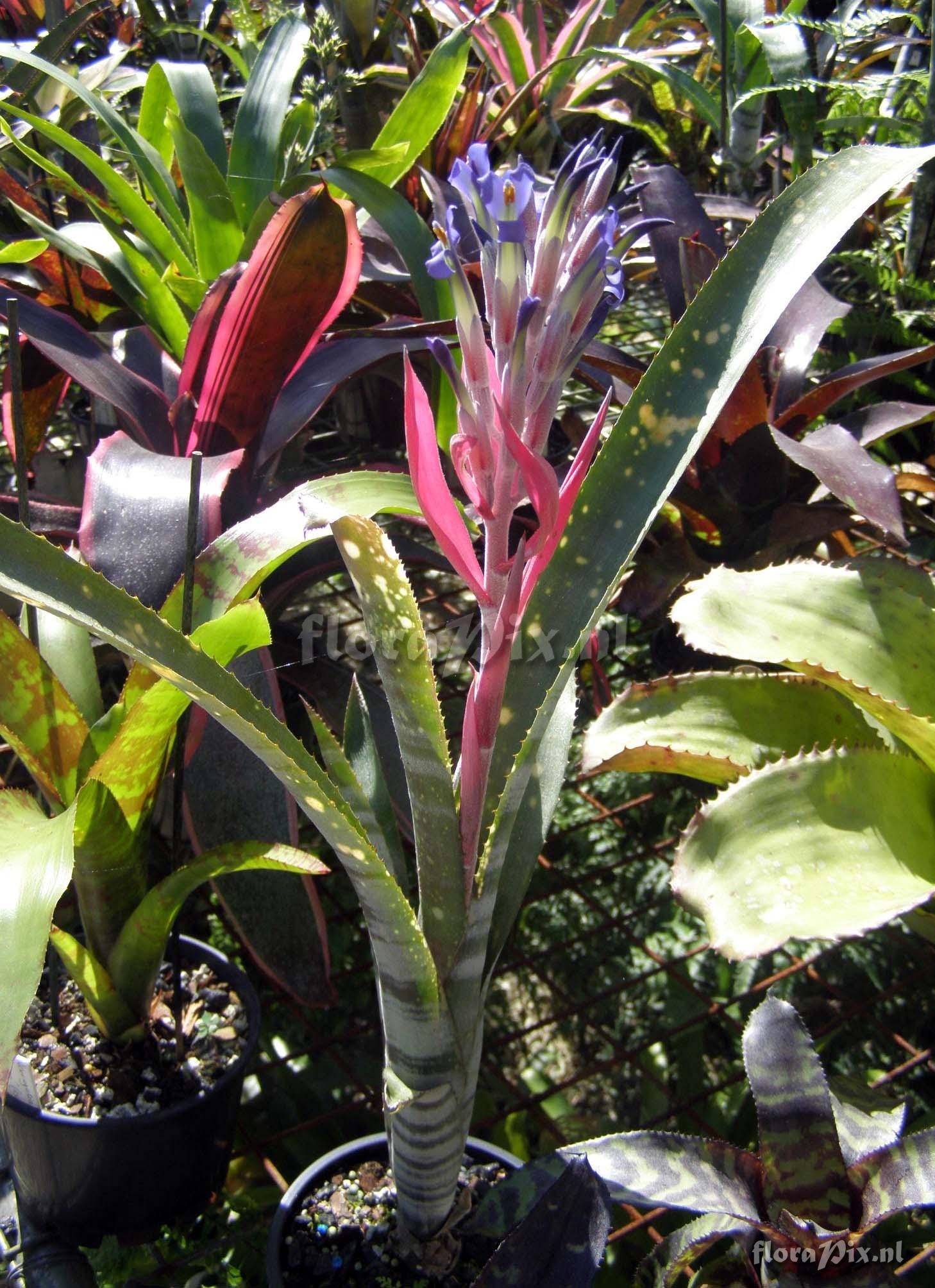 - Opmerking: Richard Martin (2012-01-30) - Looks like a Billbergia macrocalyx hybrid with its upright flower and white spotted leaves?My B.macrocalyx have paler blue flowers. (Verzonden: brom-l@science.uu.nl)