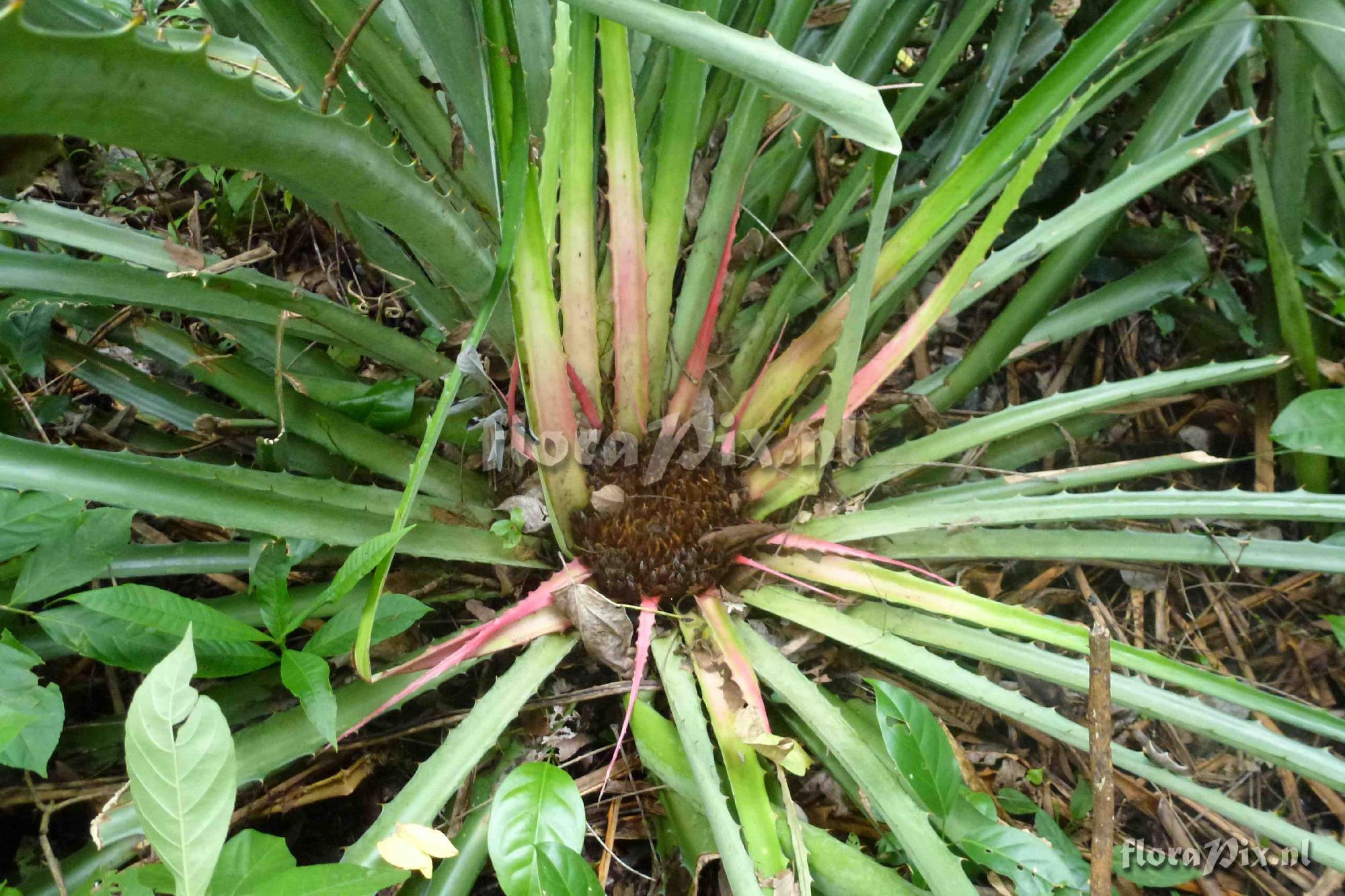 (Geladen als: Bromelia sp. ?) Verzamel locatie: Panama - Darien - Around Garachine near Cerro Sapo Fotograaf: Bruce Dunstan Opmerking: Inflo was 30 cm across and allegedly goes purplish at seed maturity according to our Embara guides (Verzonden: brom-l@science.uu.nl) Determinatie: Opgelost