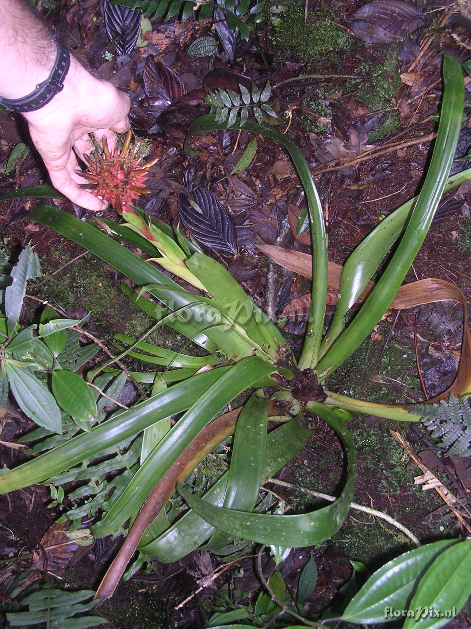 Verzamel locatie: Ecuador - Prov. of Zamora-Chinchipe, area of Estación Cientifica San Francisco (S 03°58“, W 79°04“ ), road Loja-Zamora, ca. 35 km from Loja; moist montane forest Fotograaf: Florian Werner Opmerking: Col.: Werner, F.A. 1595 (16-06-2005) - Det.: J.M. Manzanares regularly terrestrial, too. Bracts (with ripening fruits) intende brick-red.