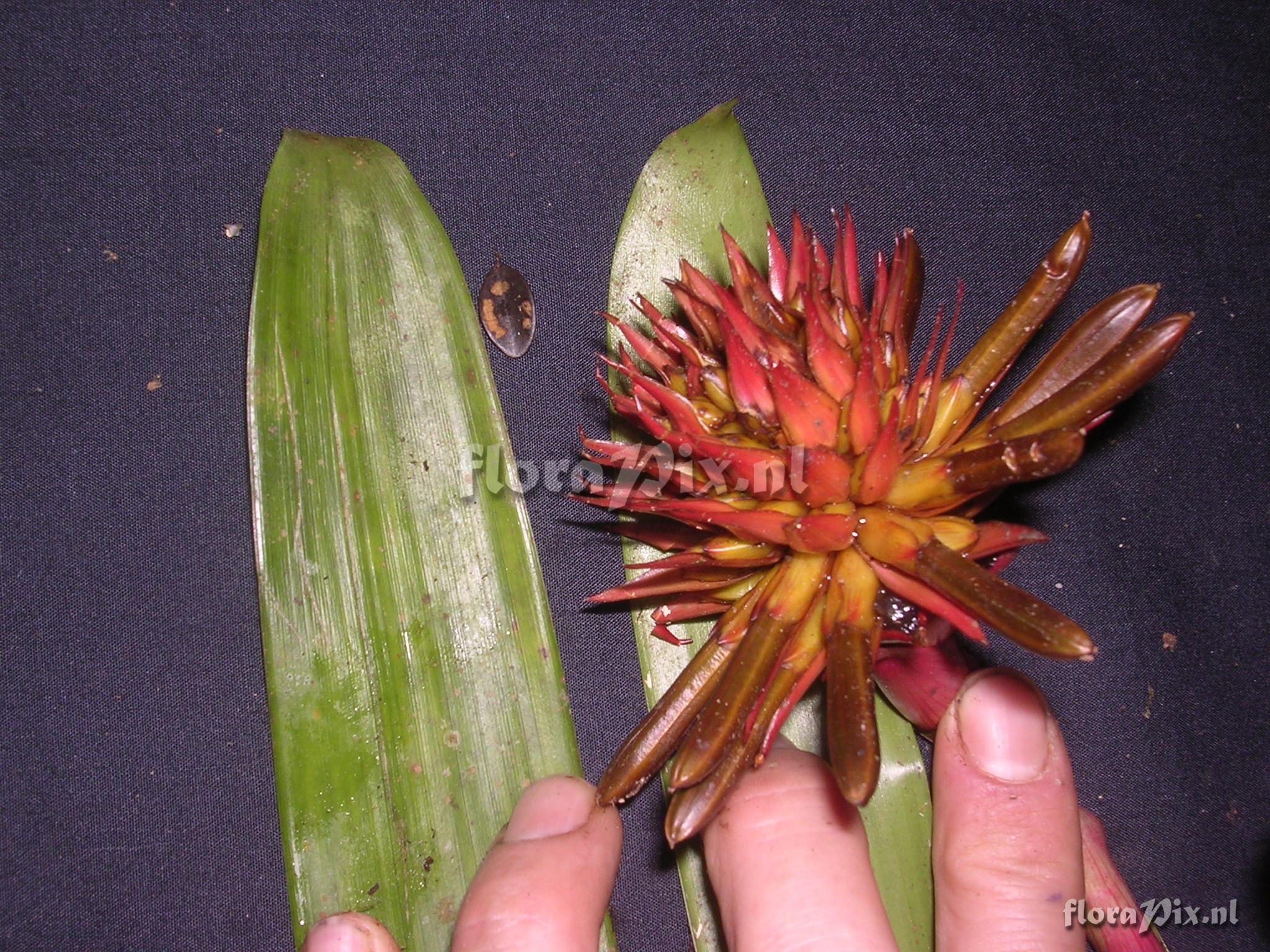Verzamel locatie: Ecuador - Prov. of Zamora-Chinchipe, area of Estación Cientifica San Francisco (S 03°58“, W 79°04“ ), road Loja-Zamora, ca. 35 km from Loja; moist montane forest Fotograaf: Florian Werner Opmerking: Col.: Werner, F.A. 1595 (16-06-2005) - Det.: J.M. Manzanares regularly terrestrial, too. Bracts (with ripening fruits) intende brick-red.