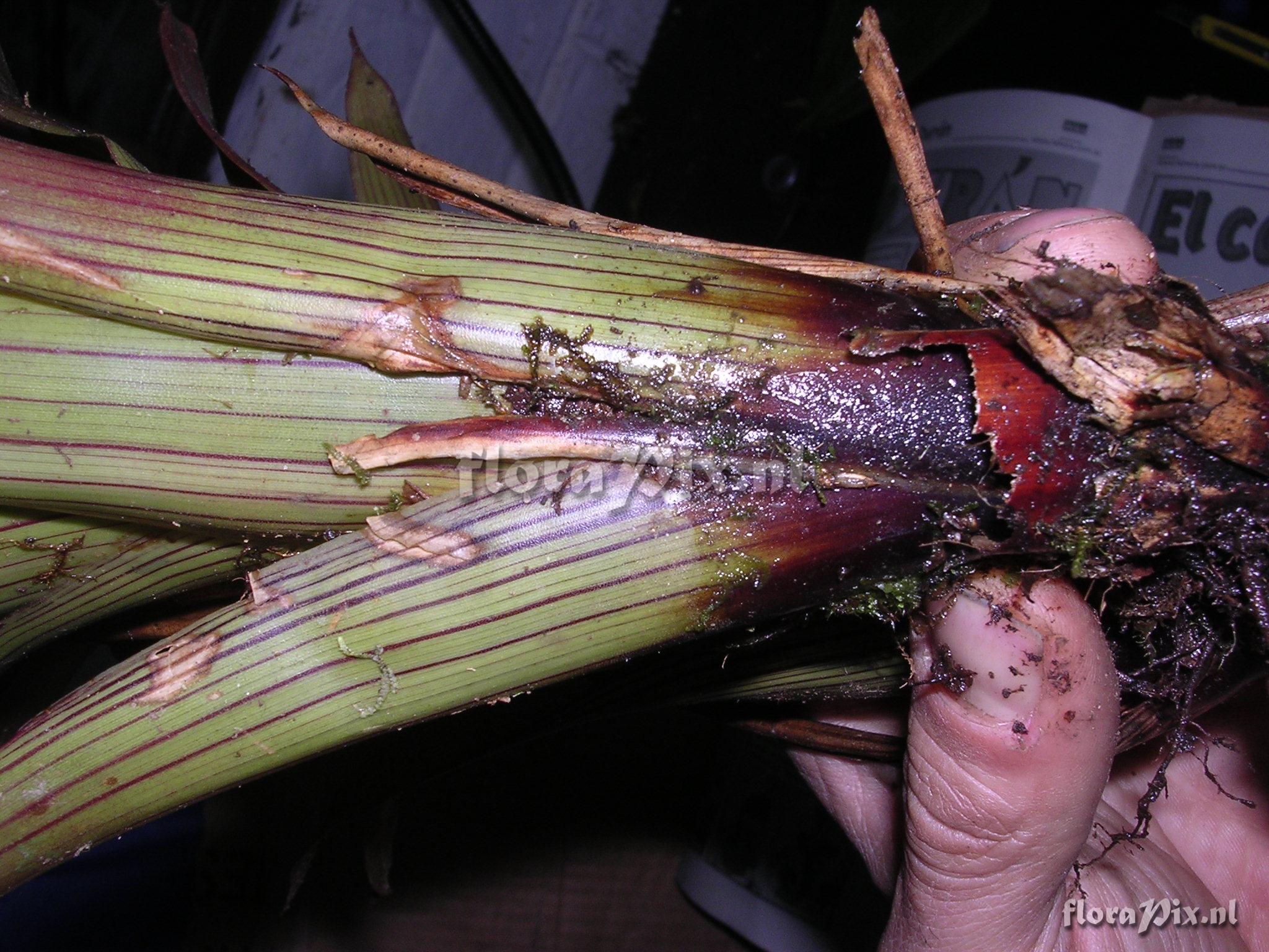 Verzamel locatie: Ecuador - Prov. of Zamora-Chinchipe, area of Estación Cientifica San Francisco (S 03°58“, W 79°04“ ), road Loja-Zamora, ca. 35 km from Loja; moist montane forest Fotograaf: Florian Werner Opmerking: Col.: Werner, F.A. 670 (19-12-2003) "Conscpicuous red veins, else light green; leaf base dark brown."