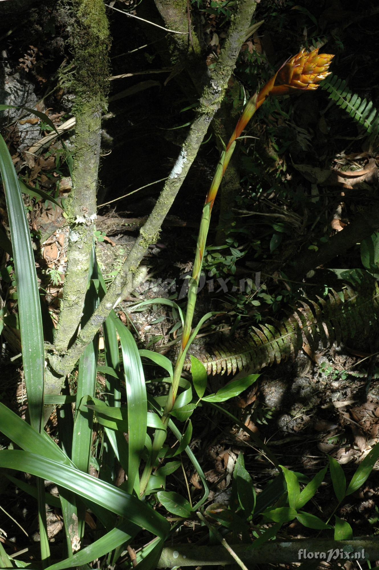 (Geladen als: Guzmania cf. tenuifolia) Verzamel locatie: Peru - Cuzco - Rio Urubamba near Agua Calientes Fotograaf: Eric Gouda Opmerking: Large plants with fist size infl. Determinatie: Opgelost