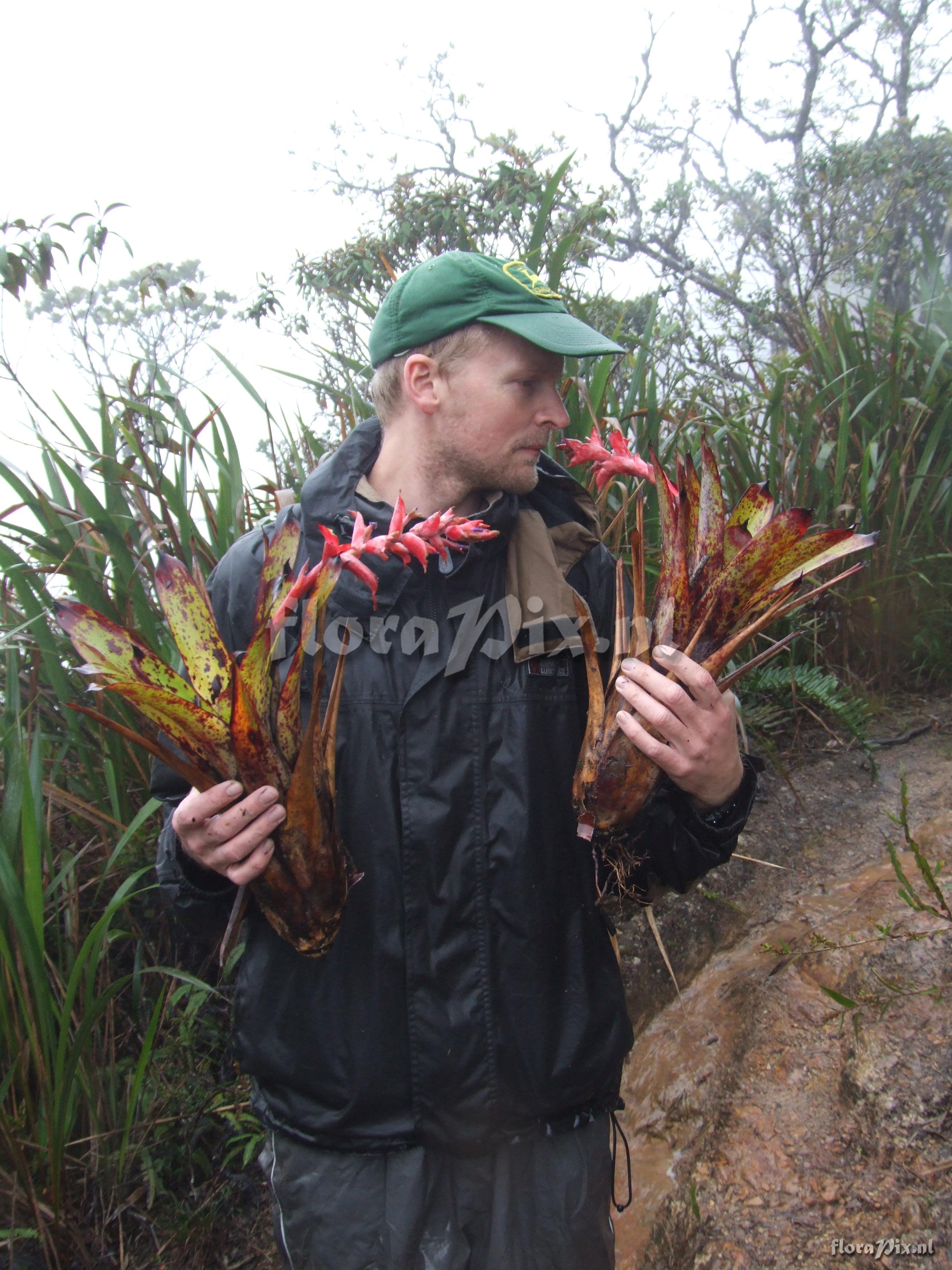 (Geladen als: Tillandsia compacta Griseb.-) Verzamel locatie: Ecuador - Prov. of Zamora-Chinchipe, area of Estación Cientifica San Francisco (S 03°58´, W 79°04´ ), road Loja-Zamora, ca. 35 km from Loja; moist montane forest Fotograaf: Florian Werner Opmerking: Col.: Werner, F.A. 1963 (23-04-2006) - Det.: H. Luther (SEL) 2007 "leaf undersides waxy; leaves forming an erect vase with central tank; semi-pendant infl.: bracts bright red, petals intense lila." Determinatie: Opgelost
