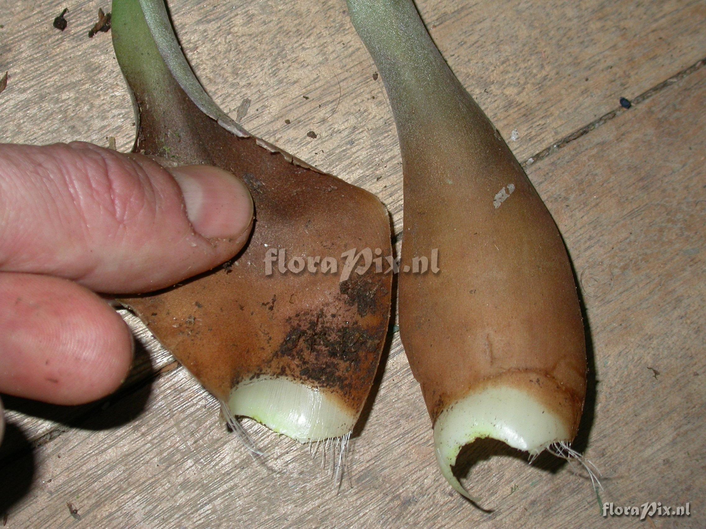 Verzamel locatie: Ecuador - Prov. of Zamora-Chinchipe, area of Estación Cientifica San Francisco (S 03°58´, W 79°04´ ), road Loja-Zamora, ca. 35 km from Loja; moist montane forest Fotograaf: Florian Werner Opmerking: Col.: Werner, F.A. 2622 (28-09-2008) - Det.: W. Till (U Vienna) 2011 petals wool-white, bracts bright orange. 7 cm long lumbricid worm in leaf axil (present to Doro).