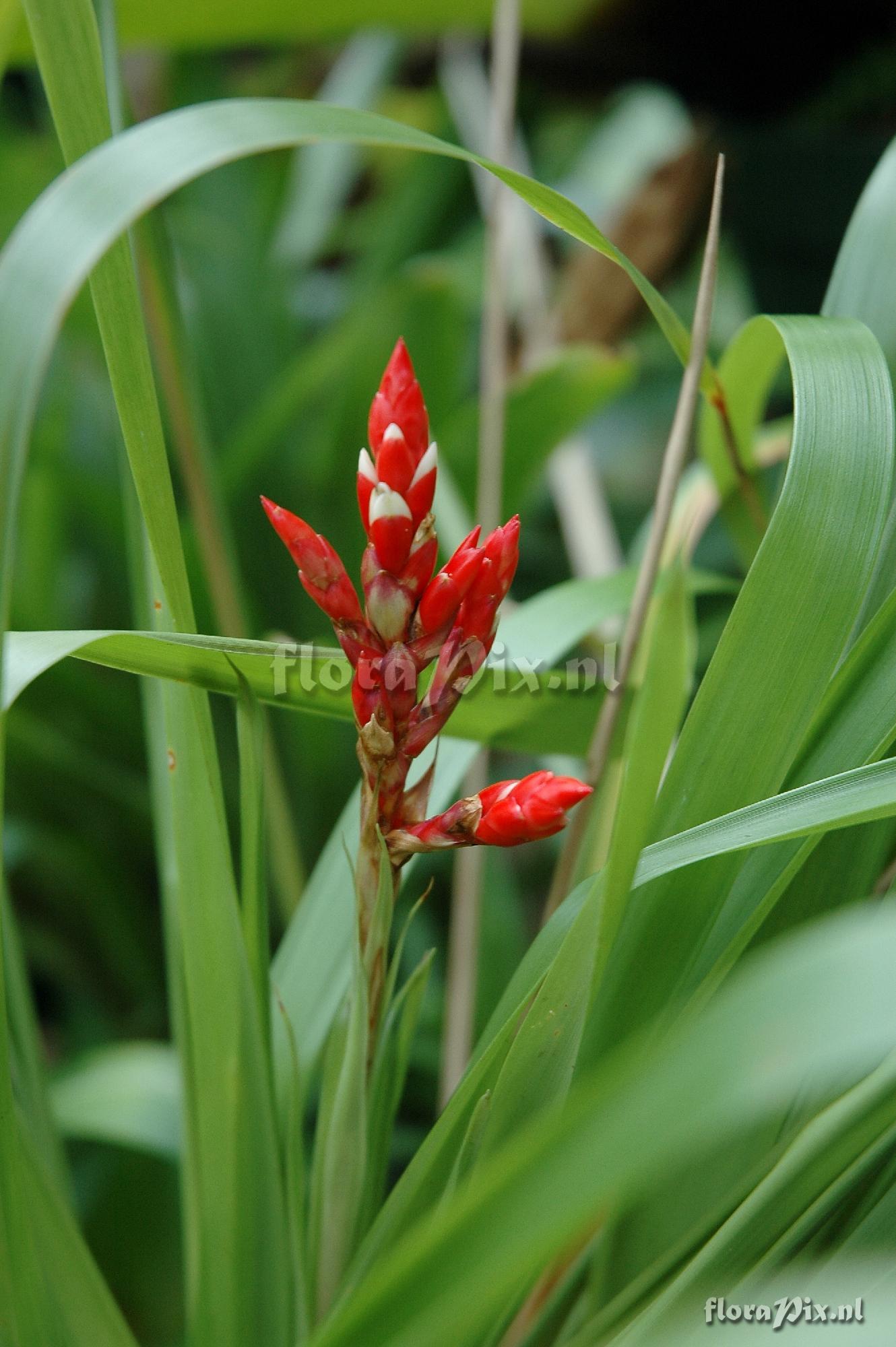 Locality: Ecuador - Unknown - This is inflorescence of Guzmania madasonii identified for me by HEL. Obtained 12 Feb 1995 with Jeffery Kent from father Angel Andreetta near Limon, Ecuador at an elevation of about 1200 meters. It was in bloom at the same time as Guzmania condorensis under the exact same conditions in my greenhouse. In include it for comparison to Guzmania condorensis. Photographer: Jerry Raack Identification: pending