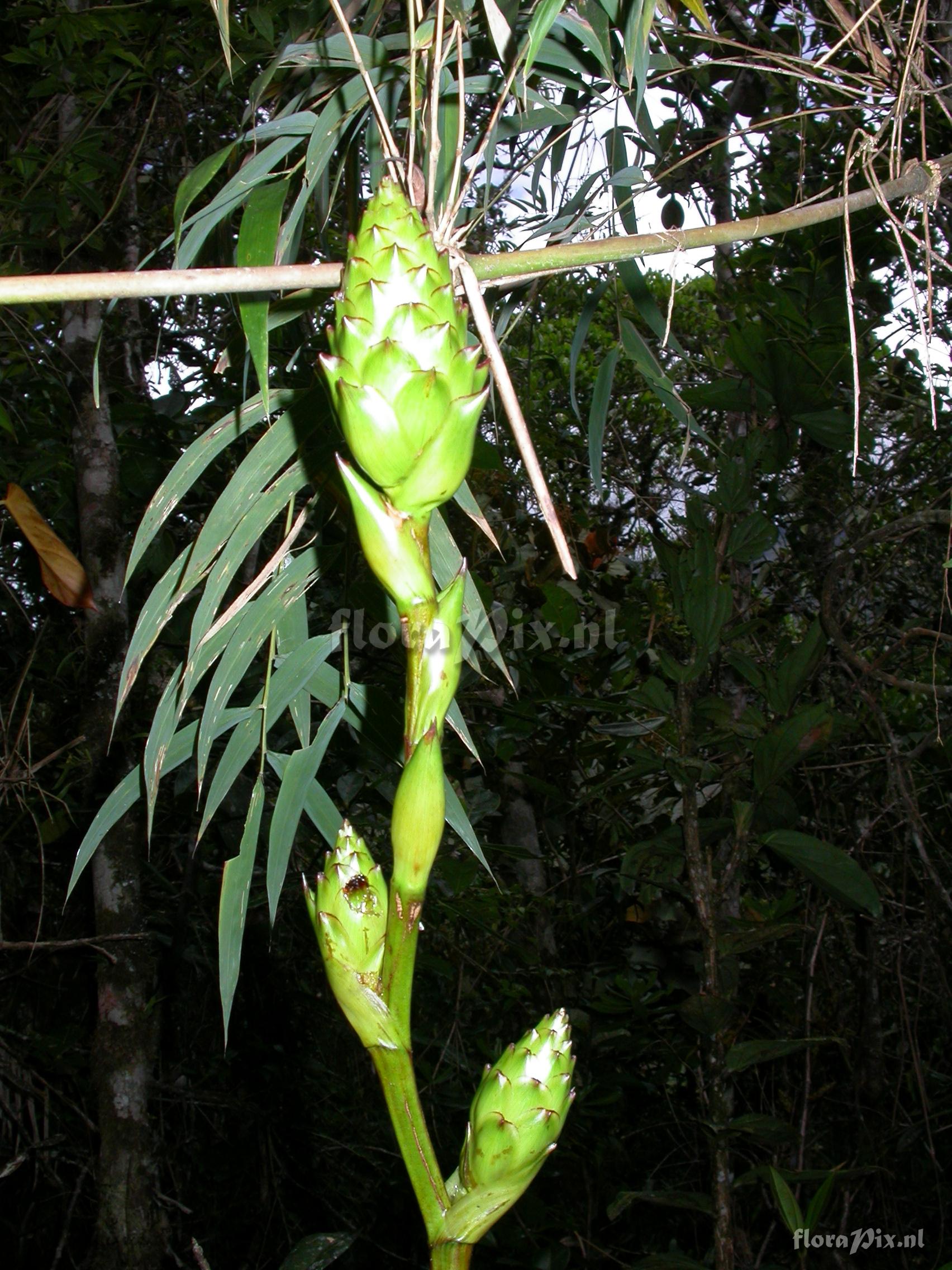 Locality: Ecuador - Prov. of Zamora-Chinchipe, area of Estación Cientifica San Francisco (S 03°58“, W 79°04“ ), road Loja-Zamora, ca. 35 km from Loja; moist montane forest Photographer: Florian Werner Note: Col.: Werner, F.A. 2116 (24-10-2006) - Det.: W. Till (U Vienna) 2011 apparently same as fw2069 though rel. small and with very little red on bracts, pedicel and peduncle. White flowers open at night.