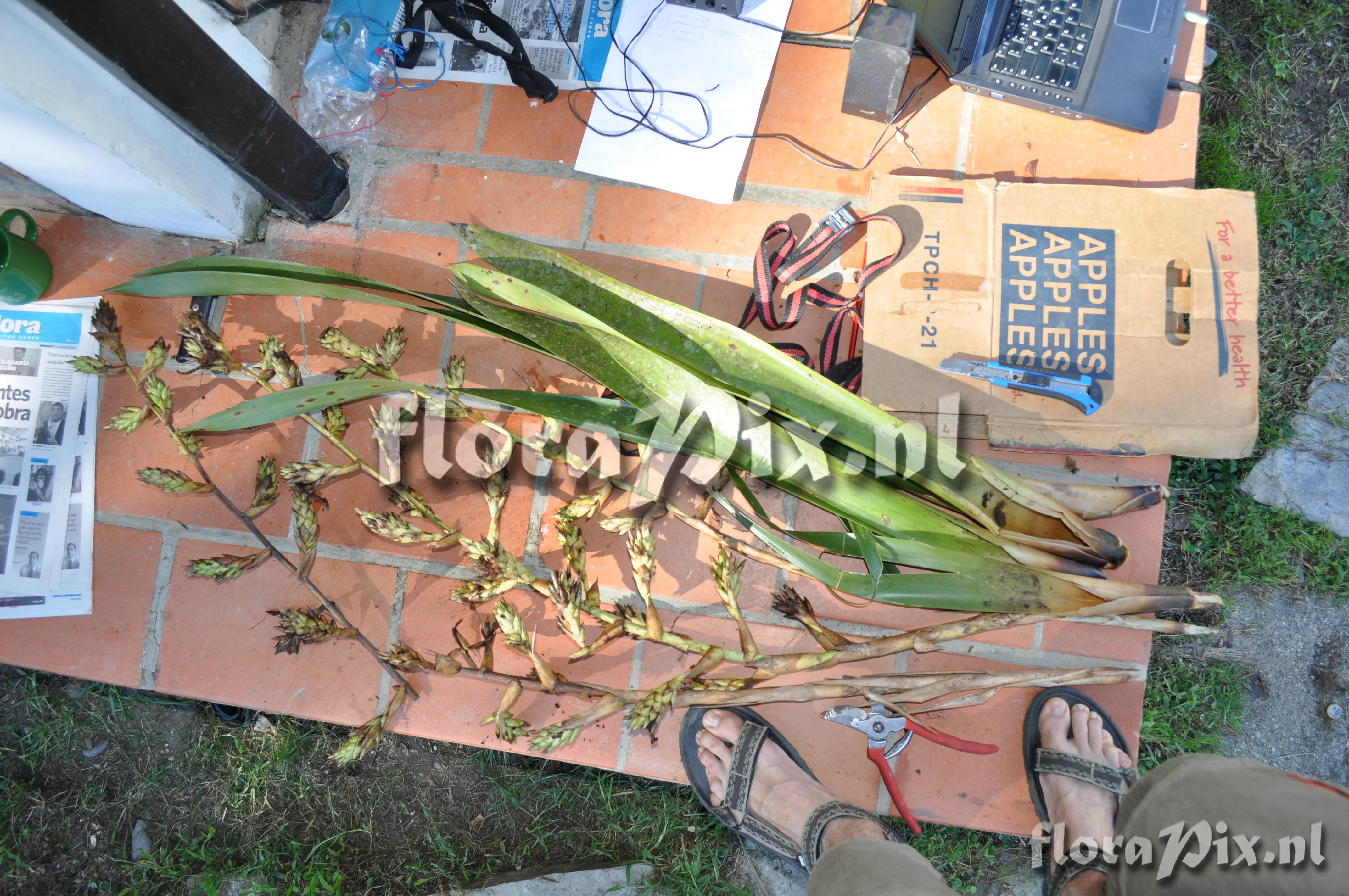 (Uploaded as: Guzmania ) Locality: Ecuador - Prov. Zamora-Chinchipe; close to Zamora; entrance of Podocarpus NP ""Bombuscaro"", tall premontane moist forest Photographer: Florian Werner Note: Col.: Werner, F.A. 3118 (08-04-2011) infl. ca. 1.5 m long, straight, erect or inclided due to weight, with flowers along terminal 1/2-2/3. Largest (widest) local tank bromeliad. Aff. G. killipiana. Identification: solved