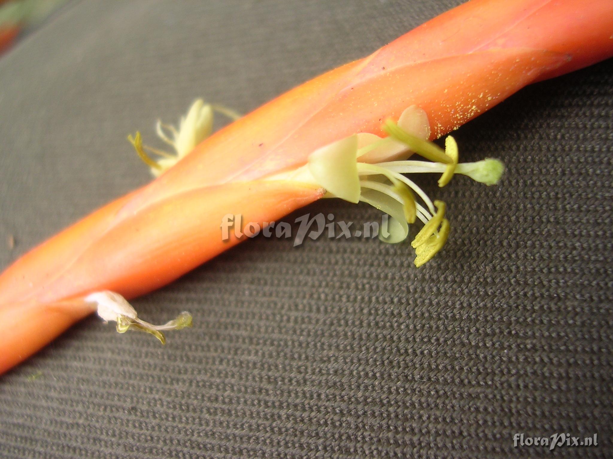 Locality: Ecuador - Prov. of Zamora-Chinchipe, area of Estación Cientifica San Francisco (S 03°58´, W 79°04´ ), road Loja-Zamora, ca. 35 km from Loja; moist montane forest Photographer: Florian Werner Note: Col.: Werner, F.A. 1688 (17-07-2005) - Det.: J.M.Manzanares flower bracts bright orange, tepals and filaments wool-white.