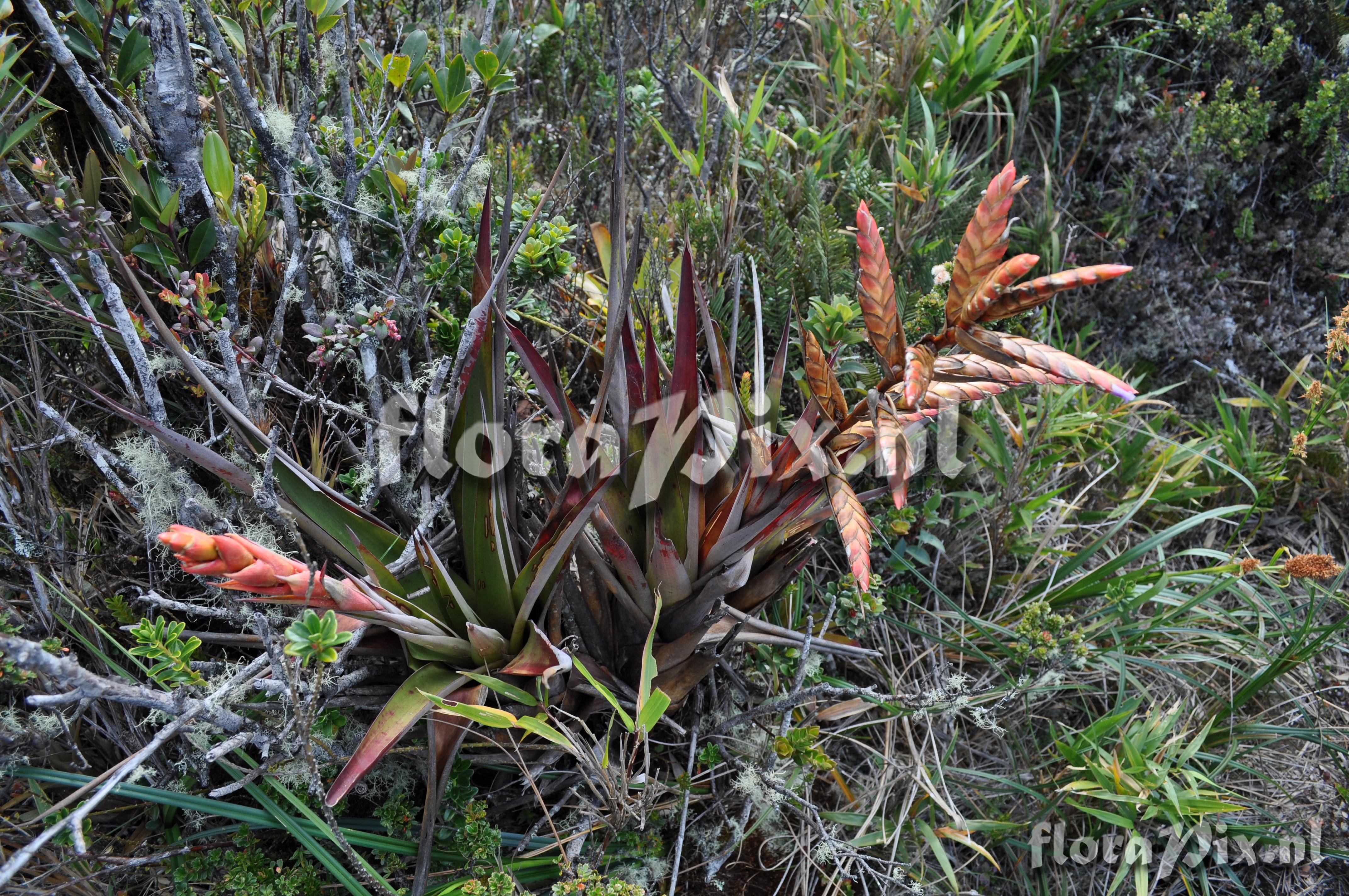 Locality: Ecuador - Prov. of Zamora-Chinchipe, area of Estación Cientifica San Francisco (S 03°58´, W 79°04´ ), road Loja-Zamora, ca. 35 km from Loja; moist montane forest Photographer: Florian Werner Note: (as Werner, F.A. 1807 ) - Det.: H. Luther (SEL) 2007 bracts brick-red, corolla whitish (mild) purple. Doesn#t seem to open a lot..
