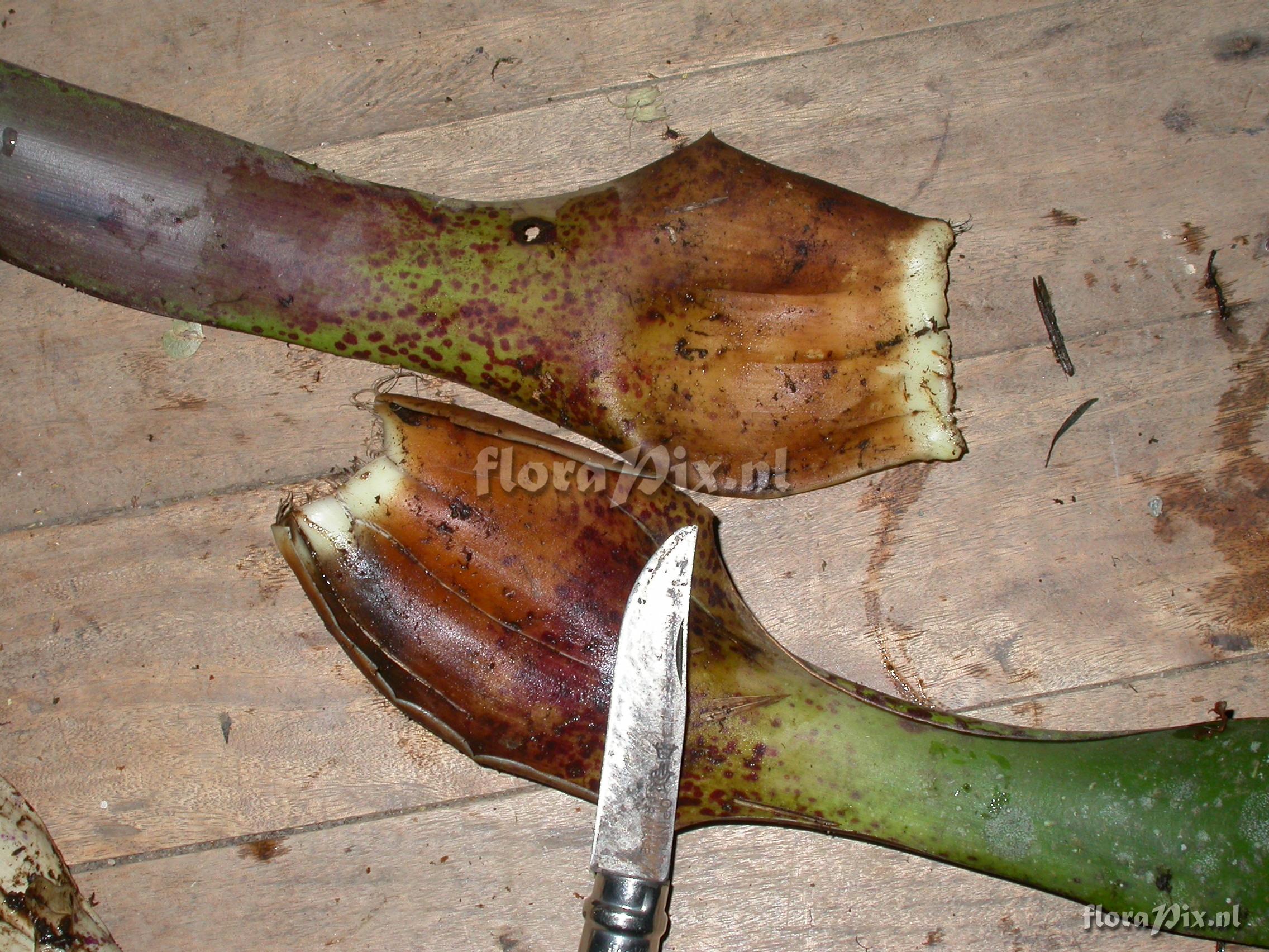 Locality: Ecuador - Arco Iris; entrance to Podocarpus NP or road Loja - Zamora; trail towards river; montane moist forest. Photographer: Florian Werner Note: Col.: Werner, F.A. 2236 (06-05-2007) - Det.: H. Luther (SEL) 2008 "leaves resembling R. monticola in coloration but tank lower, more open, of fewer and longer leaves (with massive (thick) base; infl. semi-pendant, ca. 1m long; rare species. Luther: R. tenuispica (Andre) M.A.Spencer & L.B.Sm.; Till (2011): spiculosa var. spiculosa (Griseb.) M.A. Spencer & L.B. Sm."