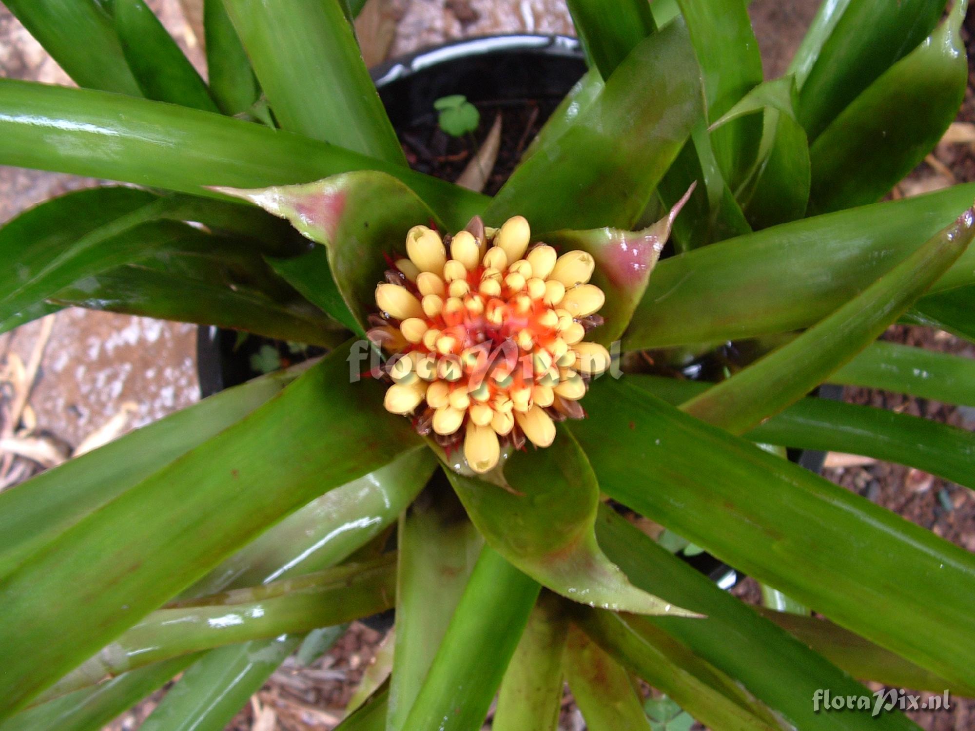 354 - Bromeliads (Garden) - 2007-06-15(Dimension: 2030 x 1550 pixels - Counter: 27003) Aechmea Calyculata ![]() Photographer: Richard Martin Note: Am I correct in this identification? I 'm begining to have doubts! The bright yellow cone flower is held low in the cup. In shade leaves are much longer. R. Martin