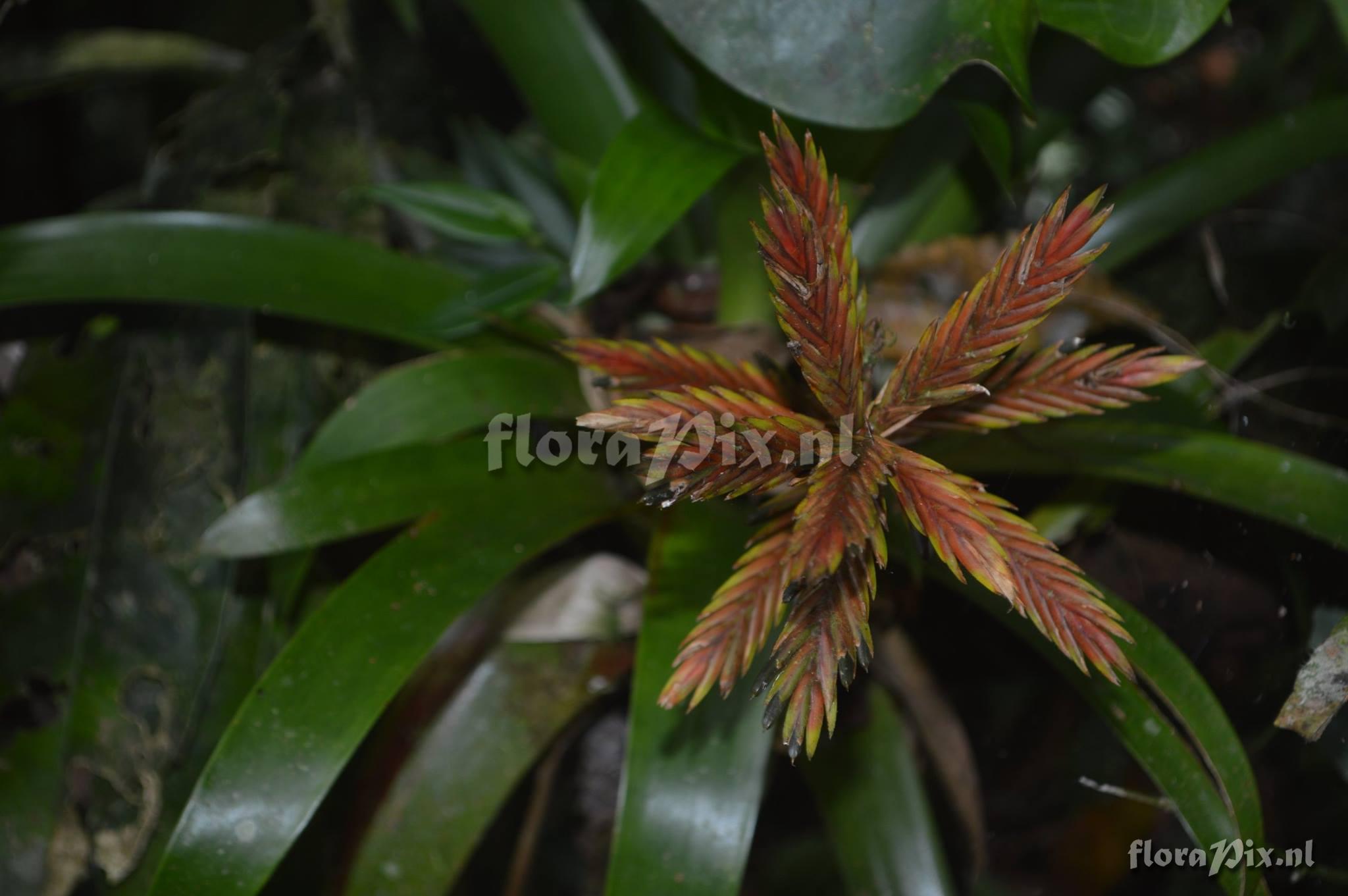 - Note: Jerry Raack (2018-09-11) - This looks like Cipuropsis zamorensis which is past its prime colors of red and yellow. If you search Vriesea zamorensis on this site you will find one with great color. (Sent: brom-l@science.uu.nl)