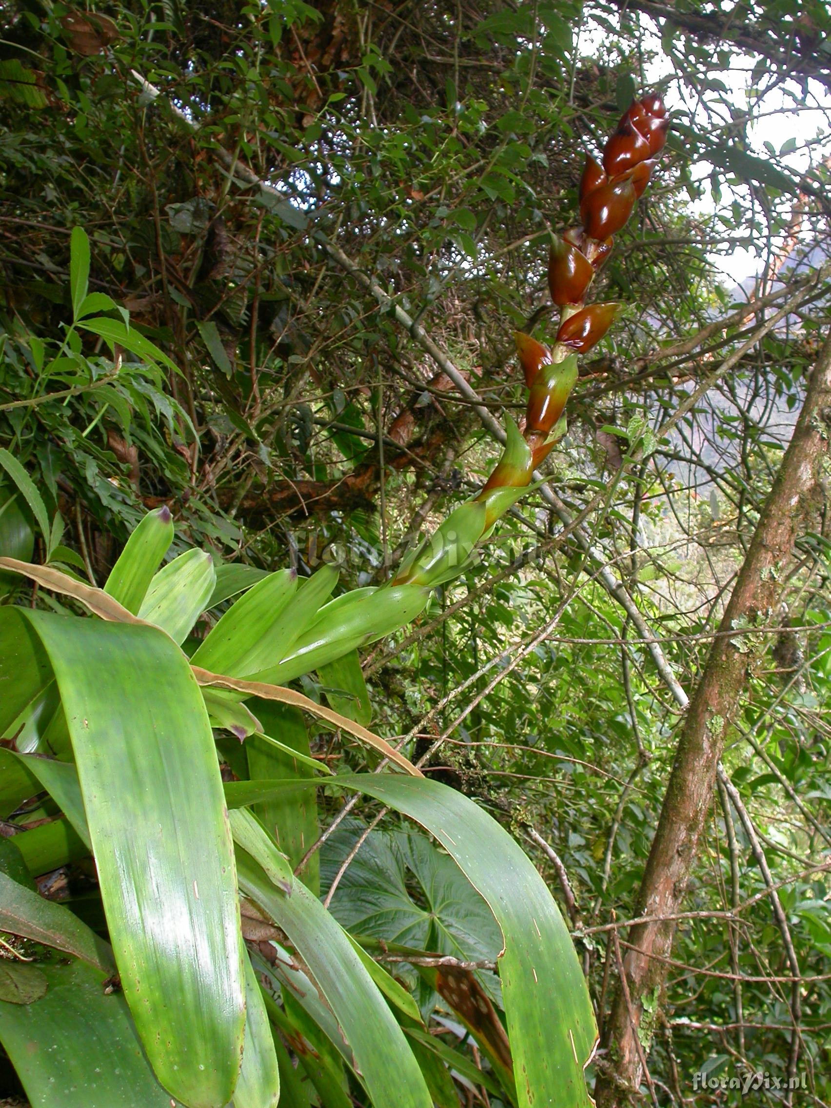 8977 - Bromeliads (Wild) - 2011-10-13(Dimension: 1734 x 2322 pixels - Counter: 9725) Guzmania xipholepis L.B. Sm. ![]() Locality: Ecuador - Prov. of Zamora-Chinchipe, area of Estación Cientifica San Francisco (S 03°58“, W 79°04“ ), road Loja-Zamora, ca. 35 km from Loja; moist montane forest Photographer: Florian Werner Note: Col.: Werner, F.A. 3058 (20-04-2010) inf. erect, large, with globose bracts subduing every parial infl. Leaves with very broaf base, tapering off ver gradually (but tip rounded).