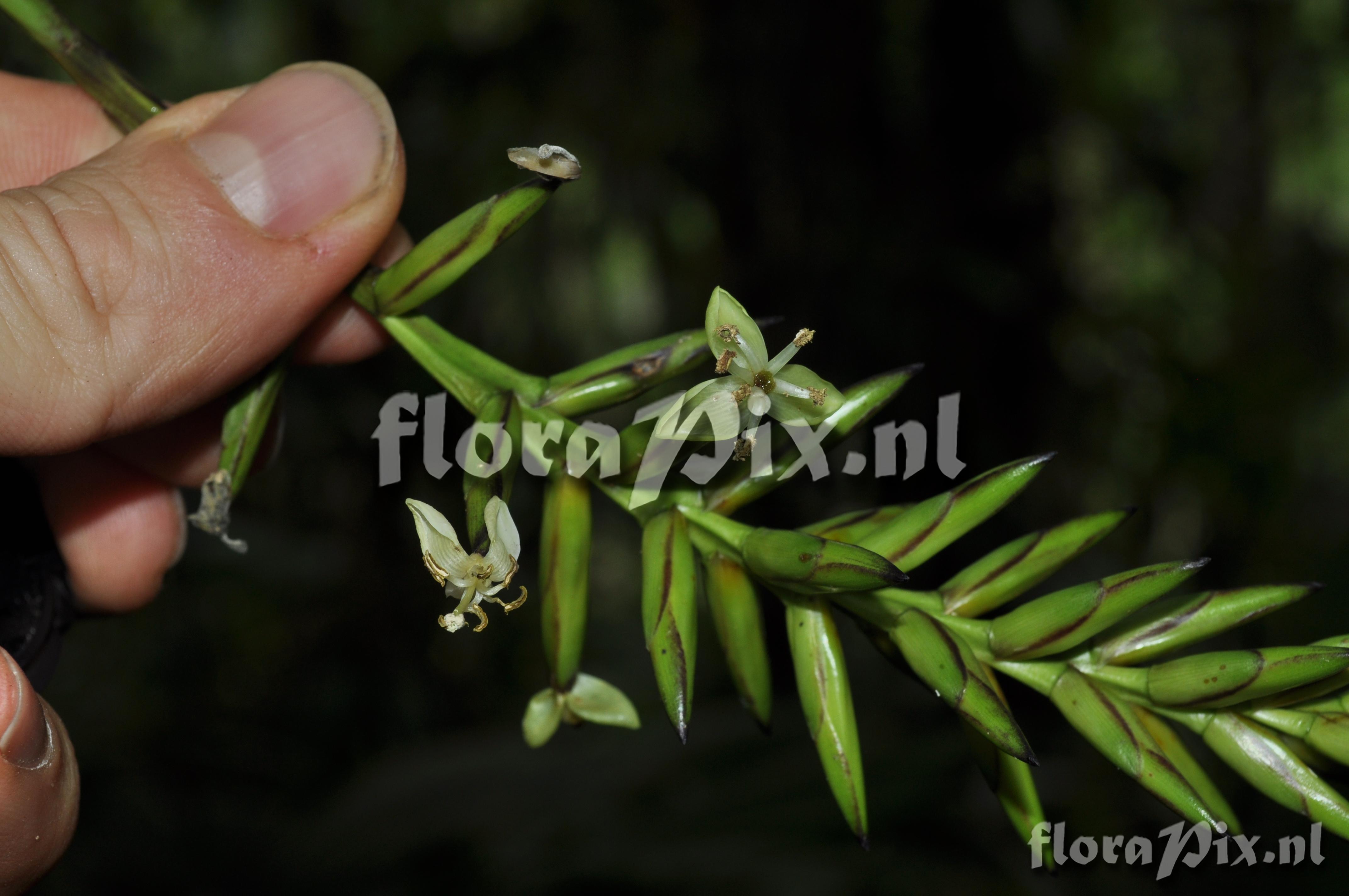 9430 - Bromeliads (Wild) - 2011-10-13(Dimension: 4318 x 2898 pixels - Counter: 9492) Guzmania roezlii (E. Morren) Mez ![]() Locality: Ecuador - Photographer: Florian Werner Note: Col.: Werner, F.A. 3105 (30-01-2011) - Det.: W. Till (U Vienna) 2011 "petals white; this species has a smoll, compact, tillandsia-like tank and (also) grows high up in the canopy. Also common at Bombuscaro. Tambien con nosotros: Jaime Pena, Juan-Carlos Sanchez, Nelson Jaramillo."