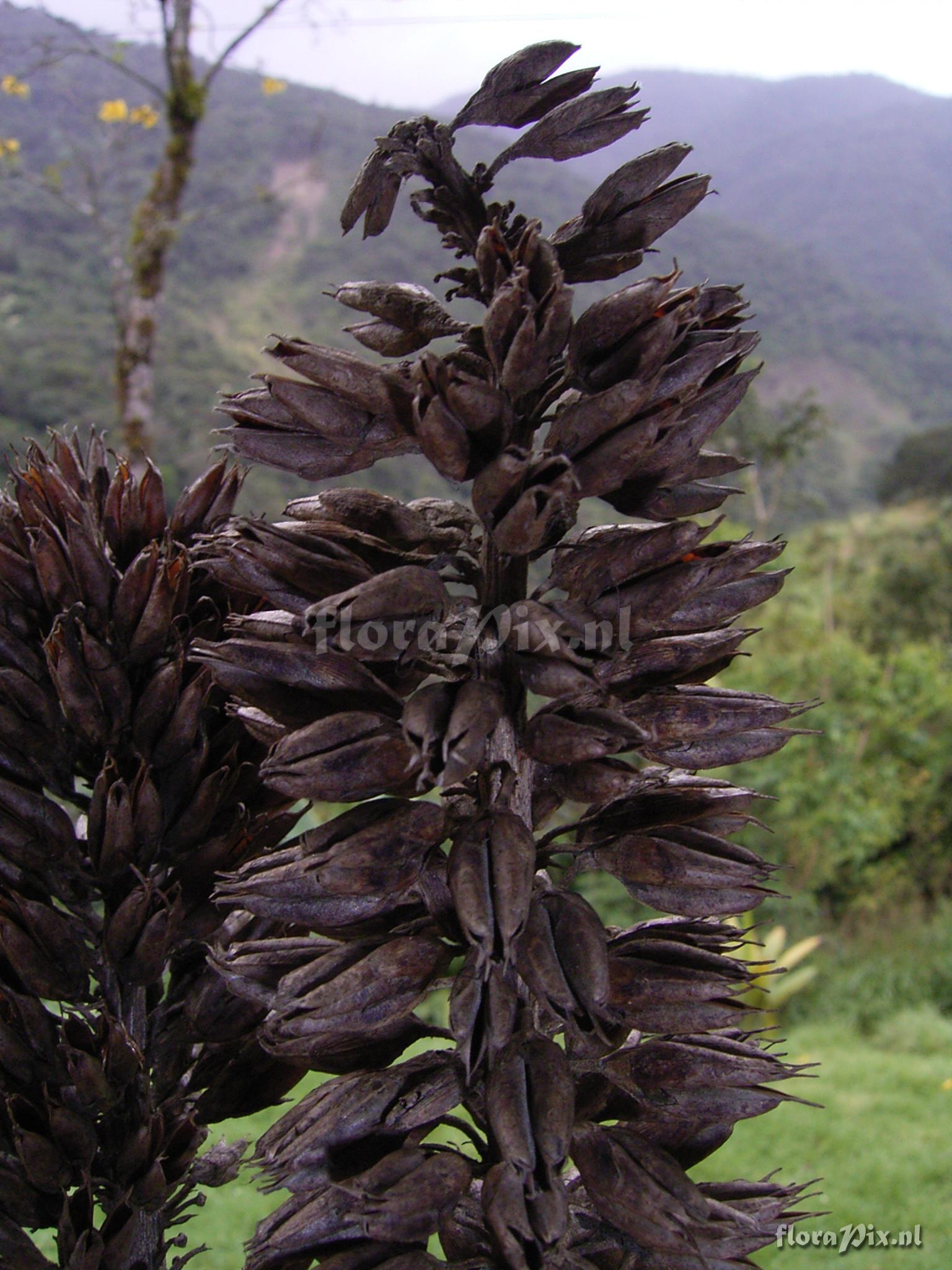 9456 - Bromeliads (Wild) - 2011-10-13(Dimension: 1566 x 2098 pixels - Counter: 8327) Pitcairnia trianae André var. retusa L.B. Sm. ![]() Locality: Ecuador - Zamora-Chinchipe Province; few km east of Pass (""El Tiro"") between Loja and Zamora; moist lower slope forest Photographer: Florian Werner Note: Col.: Werner, F.A. 1763 (08-09-2005) - Det.: H. Luther (SEL) 2007 flowers white, of hawkmoth type. inflorescence typically on 1m long stalk.