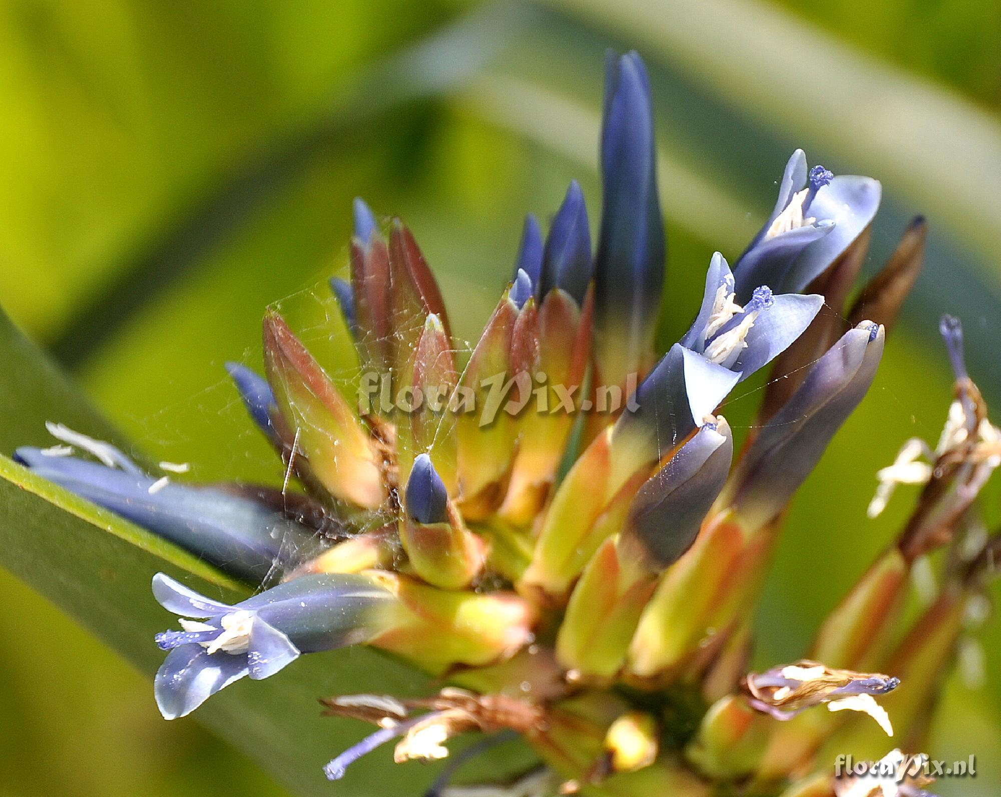 - This is certainly not Q. augusto-cooburgii. Reminds me much more in Ronnbergia brasiliensis or related Aechemea s. l. (e.g., A. fraseri) - Note (9919): Wesley Schilling (2012-07-16) - My foliage is all green with light whitish banding on underside of foliage and foliage is tubular. Flowers are metalliac blue and not a lilac (?) color. Foliage is tubular in form and upright.