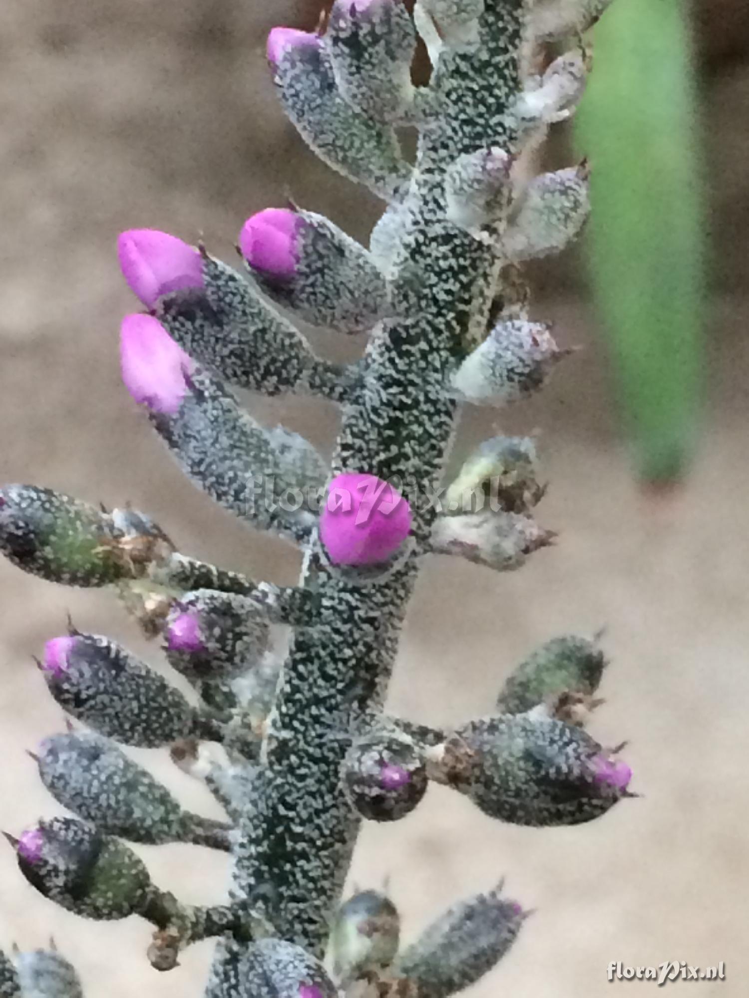 - The ireegular dots and the violet hues strongly remind me in this species - Determinatie (11816): Richard Martin (2014-10-09) =aechmea lueddemanniana var. rubra