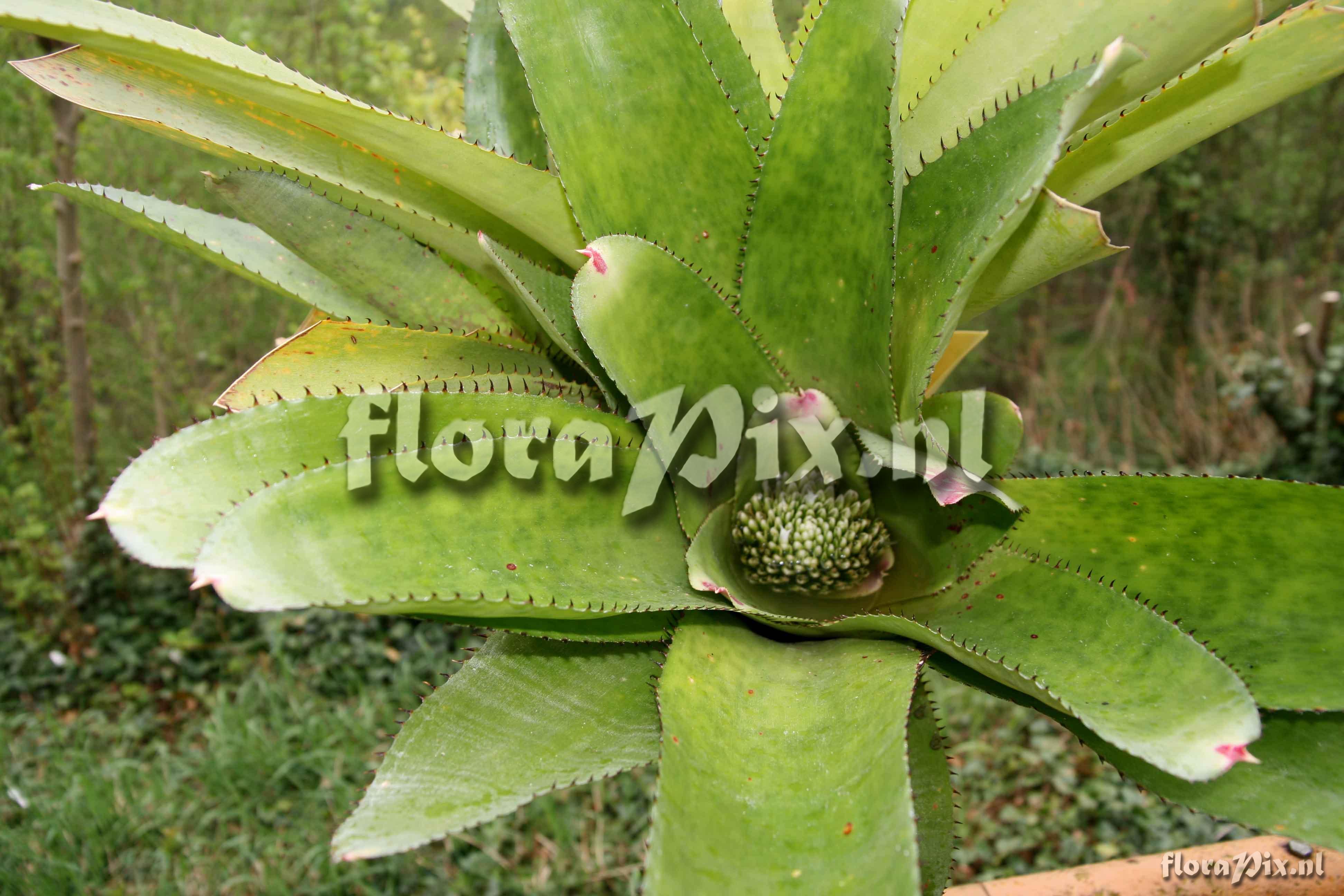 - I added two pictures from my plant after cultivation in the open, my garden in Germany. The plant developed the typical N.-correia-araujoi-markings that fade away with age or in the winter. As N. johannis should have no blotchy markings, this plant should be N. correia-araujoi. (Verzonden: brom-l@nic.surfnet.nl) - Opmerking (1837): Eric Gouda (2010-01-27) - The description of N.johannis is very poor and no specimen available and locality is unknown: Plant very stout. Leaves rather few, to 5 dm long; Blades gently re-curving, channeled, subtrunctate and then terminating in a stout black spine, pale green or whitish, red-spotted, laxly serrulate. Inflorescence deep in the leaf-rosette. Petals slightly exceeding the floral bracts and sepals, acuminate, white, spreading.