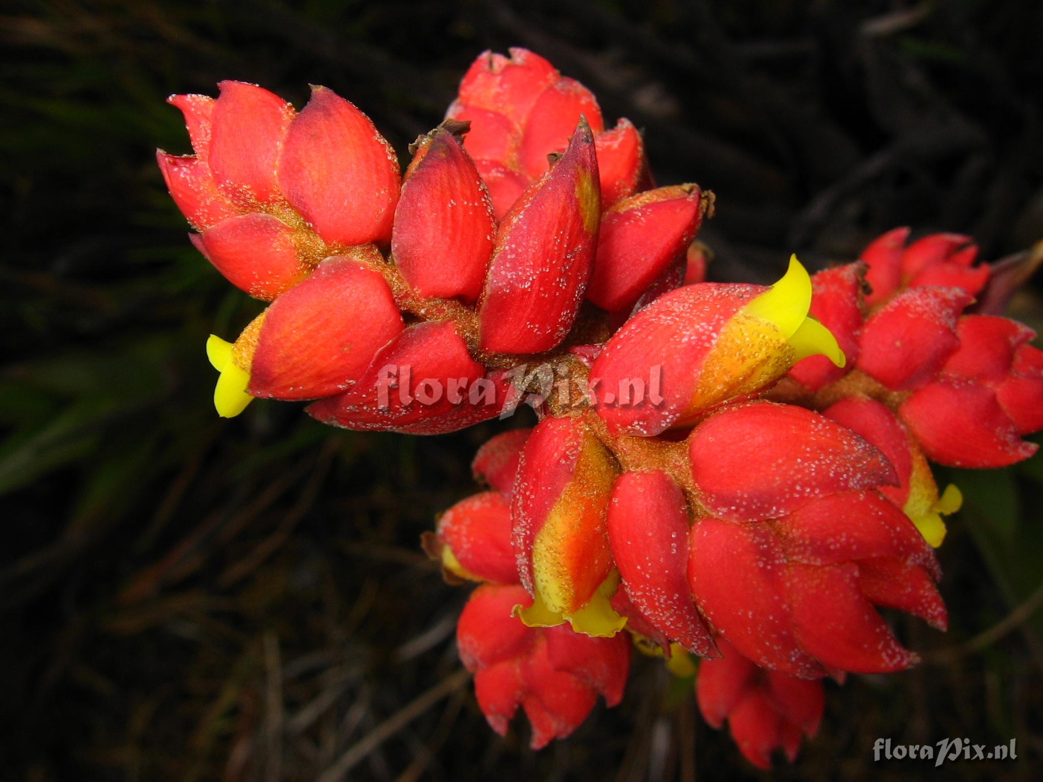 Locality: Ecuador - Prov. of Zamora-Chinchipe, area of Estación Cientifica San Francisco (S 03°58“, W 79°04“ ), road Loja-Zamora, ca. 35 km from Loja; moist montane forest Photographer: Florian Werner Note: Col.: Werner, F.A. 2374 (27-10-2007) - Det.: H. Luther (SEL) 2008 peduncle, pedicels y bracts brick-red. Only 1 specimen.