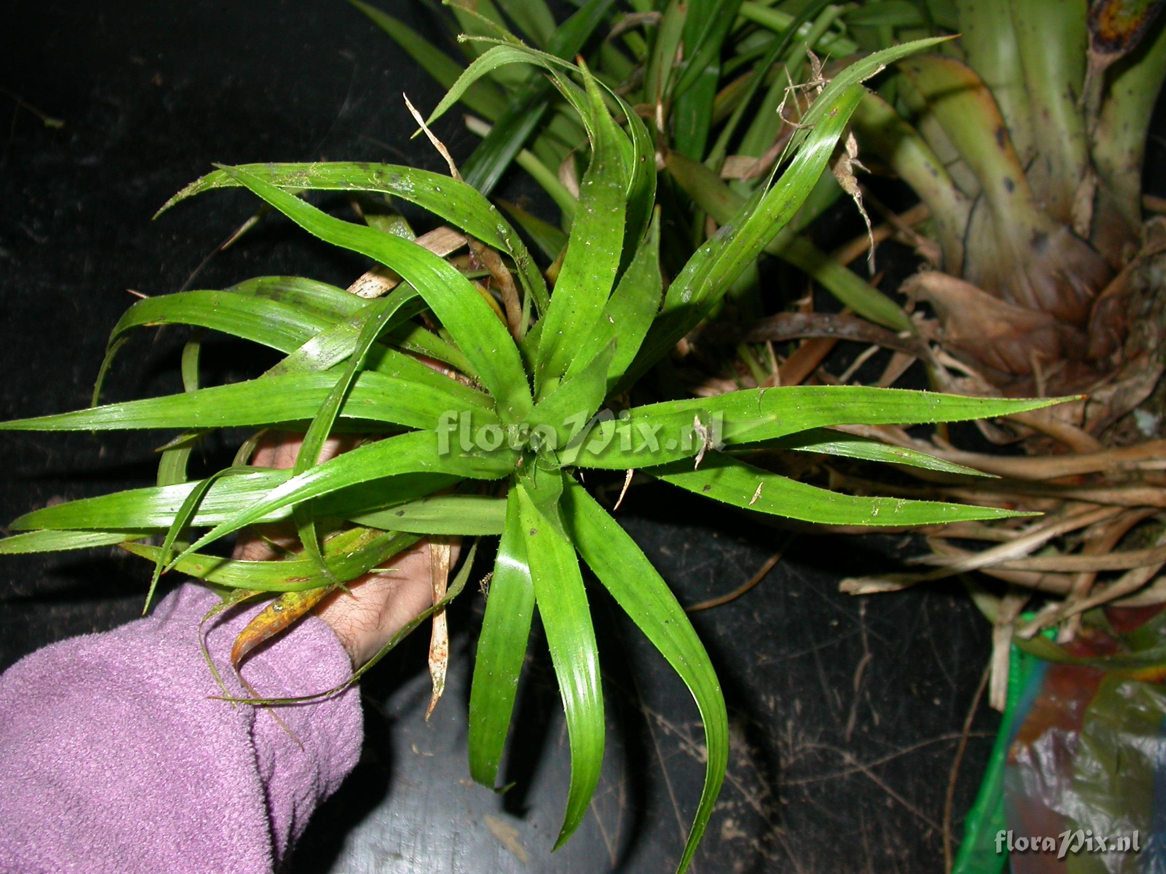 7996 - Bromeliads (Wild) - 2011-10-13(Dimension: 2302 x 1754 pixels - Counter: 8040) Greigia ![]() Locality: Ecuador - Zamora-Chinchipe Province; few km east of Pass (""El Tiro"") between Loja and Zamora; moist lower slope forest Photographer: Florian Werner Note: Col.: Werner, F.A. 2136 (09-12-2006) "leaves 25-30cm long, base chestnut-brown on both sides, shoot ca. 1cm diameter; considerably smaller than any other local Greigia; single leaves from mat. plant."