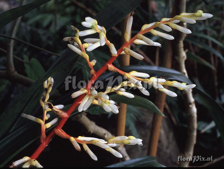 - Note: Eric Gouda (2013-08-27) - I've seen it before at Bak's nursery and need to check my slides. Maybe related to Guzmania scherzeriana (var. albiflora=G.alborosea) (Sent: brom-l@science.uu.nl)