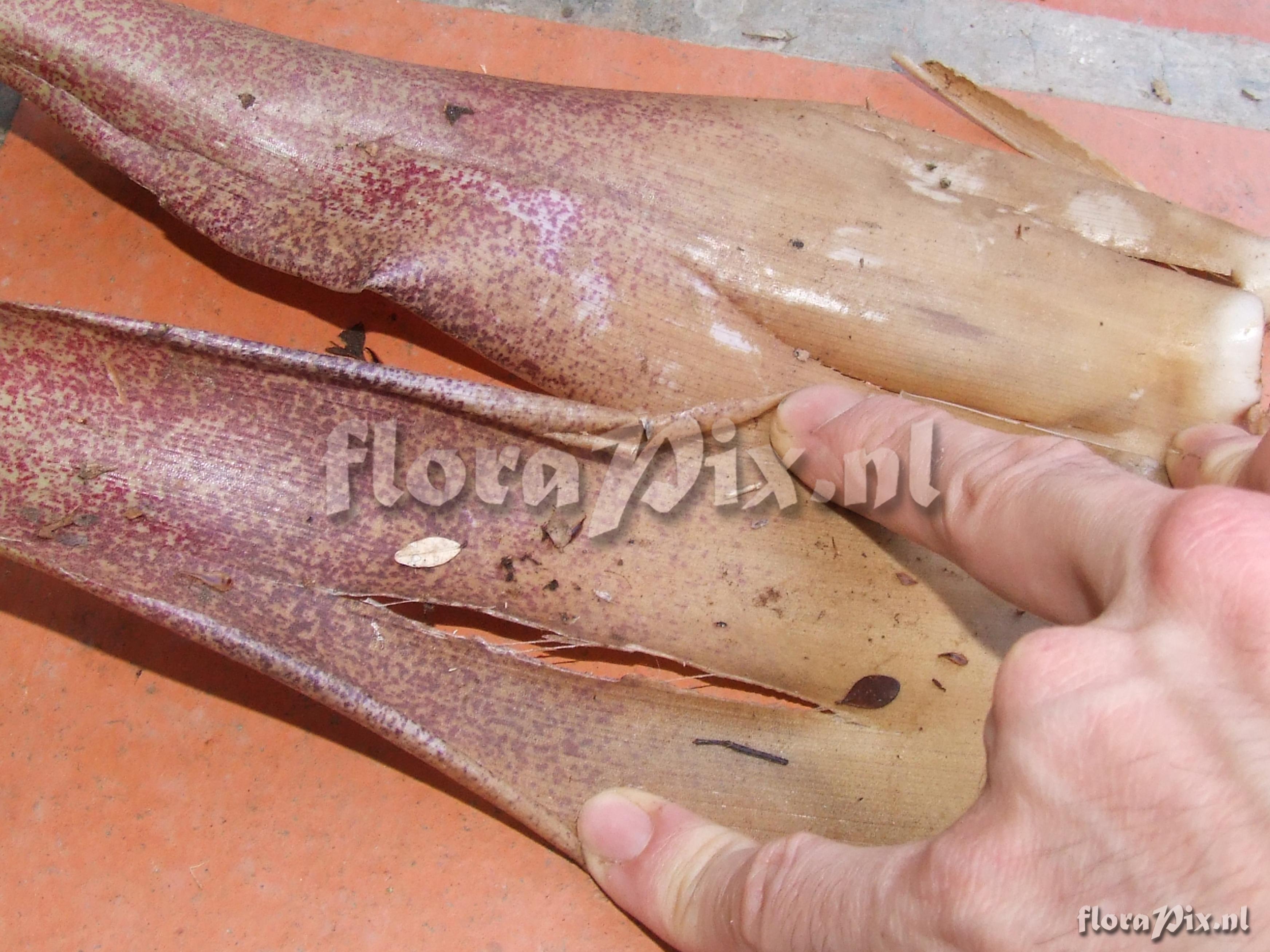 7721 - Bromeliads (Wild) - 2011-10-13(Dimension: 3518 x 2666 pixels - Counter: 9888) Guzmania kareniae ![]() (Uploaded as: Guzmania aff. sanguinea 2 ) Locality: Ecuador - Prov. of Zamora-Chinchipe, area of Estación Cientifica San Francisco (S 03°58“, W 79°04“ ), road Loja-Zamora, ca. 35 km from Loja; moist montane forest Photographer: Florian Werner Note: Col.: Werner, F.A. 1959 (23-04-2006) very much like G. sanguinea (fw1787) which grows at lower altitude and has yellow bract centers while THIS has red bract centers along with the yellow flowers. This species also has prominent fine red spotting on basal ca. third of leaves. Identification: Solved