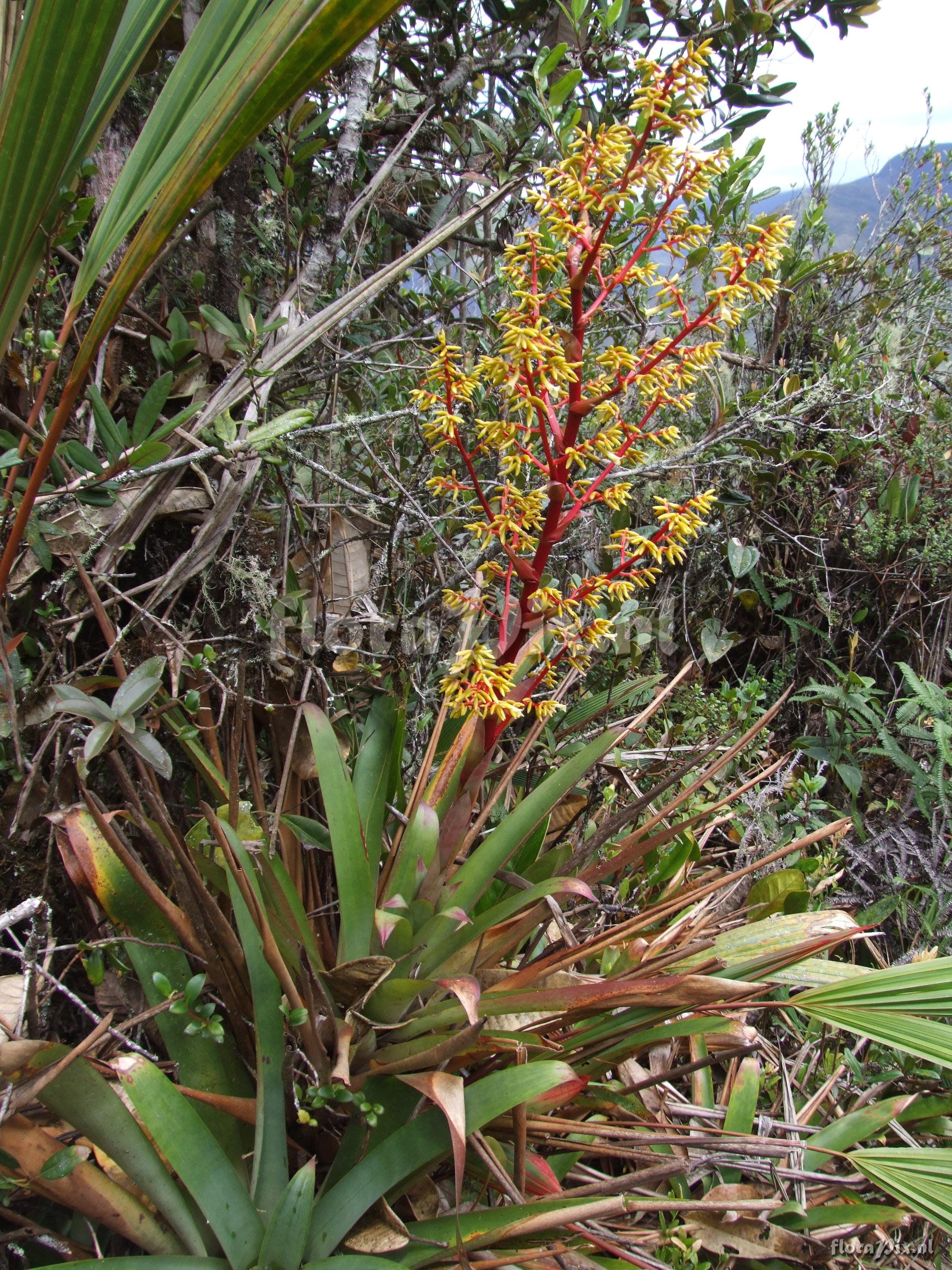 7874 - Bromeliads (Wild) - 2011-10-13(Dimension: 2646 x 3538 pixels - Counter: 10207) Guzmania cf. diffusa L.B. Sm. ![]() Locality: Ecuador - Prov. of Zamora-Chinchipe, area of Estación Cientifica San Francisco (S 03°58“, W 79°04“ ), road Loja-Zamora, ca. 35 km from Loja; moist montane forest Photographer: Florian Werner Note: Col.: Werner, F.A. 2081 (14-09-2006) - Det.: W. Till (U Vienna) 2011 petals yellow, calyx bright yellow, pedicels and pedunvle red.
