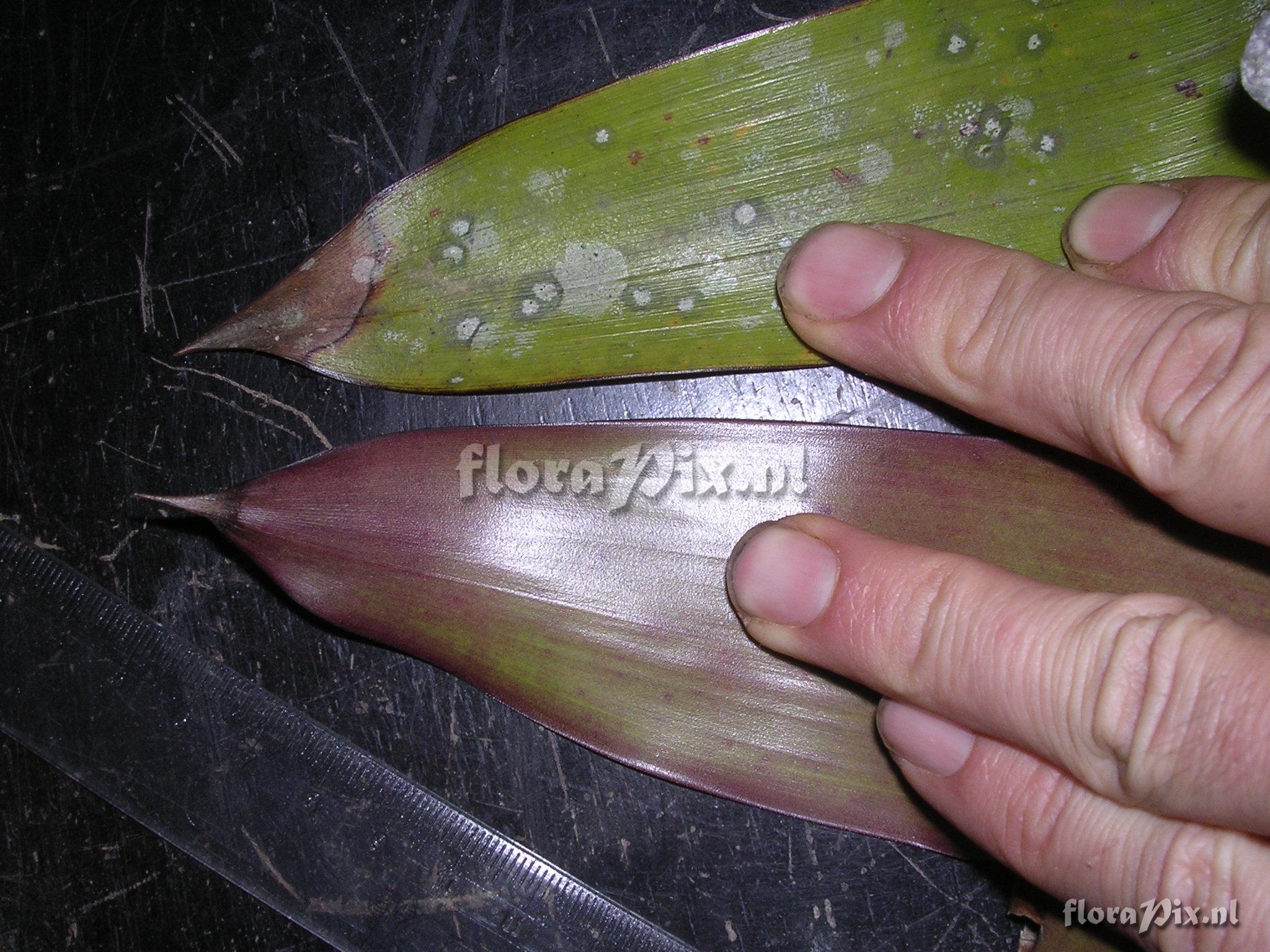 7924 - Bromeliads (Wild) - 2011-10-13(Dimension: 2078 x 1586 pixels - Counter: 7856) Guzmania claviformis ![]() (Uploaded as: Guzmania ) Locality: Ecuador - Prov. of Zamora-Chinchipe, area of Estación Cientifica San Francisco (S 03°58“, W 79°04“ ), road Loja-Zamora, ca. 35 km from Loja; moist montane forest Photographer: Florian Werner Note: Col.: Werner, F.A. 1782 (20-09-2005) "bracts along stalk (incl. those embracing the infl.) dirty purple or - simply - green (just as abaxial young leaves), bracts subduing flowers light red with yellow tips. Petals fleshy, wool-white; uncommon. Common (and larger) around 1000m, Bombuscaro." Identification: Solved