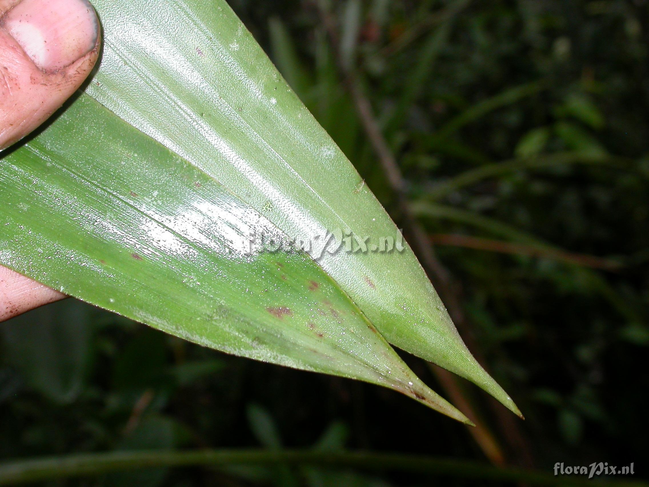 8521 - Bromeliads (Wild) - 2011-10-13(Dimension: 2302 x 1754 pixels - Counter: 6543) Guzmania ![]() Locality: Ecuador - Prov. Zamora-Chinchipe; close to Zamora; entrance of Podocarpus NP ""Bombuscaro"", tall premontane moist forest Photographer: Florian Werner Note: (as Werner, F.A. 3118 ) infl. ca. 1.5 m long, straight, erect or inclided due to weight, with flowers along terminal 1/2-2/3. Largest (widest) local tank bromeliad. Aff. G. killipiana.