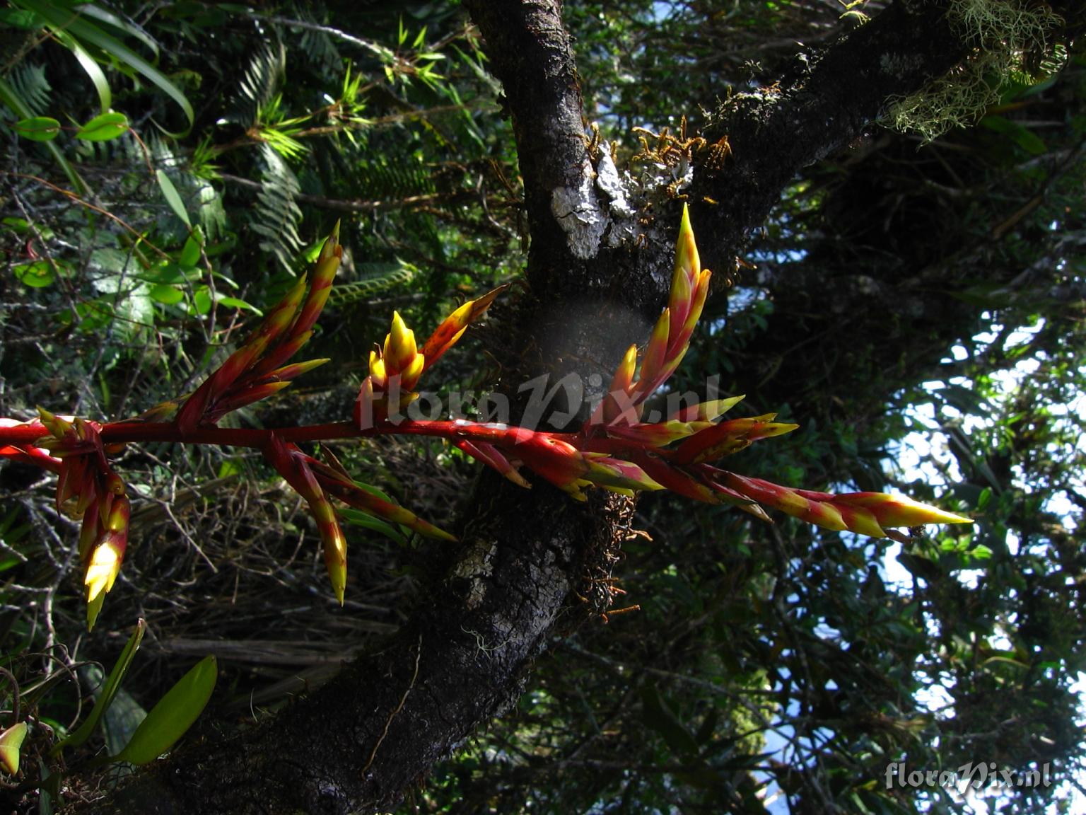 9304 - Bromeliads (Wild) - 2011-10-13(Dimension: 1566 x 2098 pixels - Counter: 8444) Guzmania paniculata Mez ![]() Locality: Ecuador - Prov. of Zamora-Chinchipe, area of Estación Cientifica San Francisco (S 03°58“, W 79°04“ ), road Loja-Zamora, ca. 35 km from Loja; moist montane forest Photographer: Florian Werner Note: (as Werner, F.A. 402 ) "inflorescence erect, open, red and yellow; dominating herb layer around 2400m"