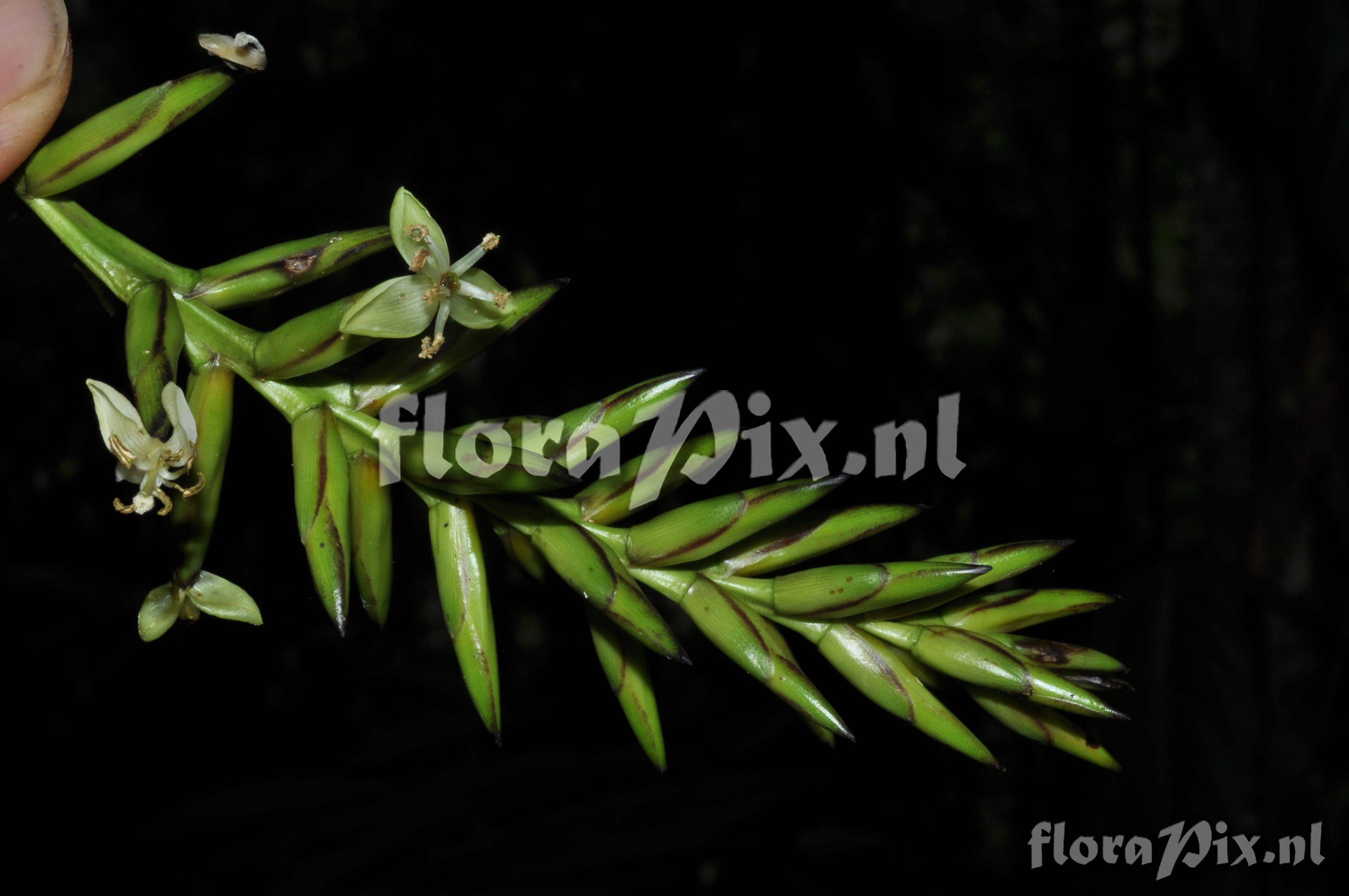 9431 - Bromeliads (Wild) - 2011-10-13(Dimension: 4318 x 2898 pixels - Counter: 9451) Guzmania roezlii (E. Morren) Mez ![]() Locality: Ecuador - Photographer: Florian Werner Note: Col.: Werner, F.A. 3105 (30-01-2011) - Det.: W. Till (U Vienna) 2011 "petals white; this species has a smoll, compact, tillandsia-like tank and (also) grows high up in the canopy. Also common at Bombuscaro. Tambien con nosotros: Jaime Pena, Juan-Carlos Sanchez, Nelson Jaramillo."