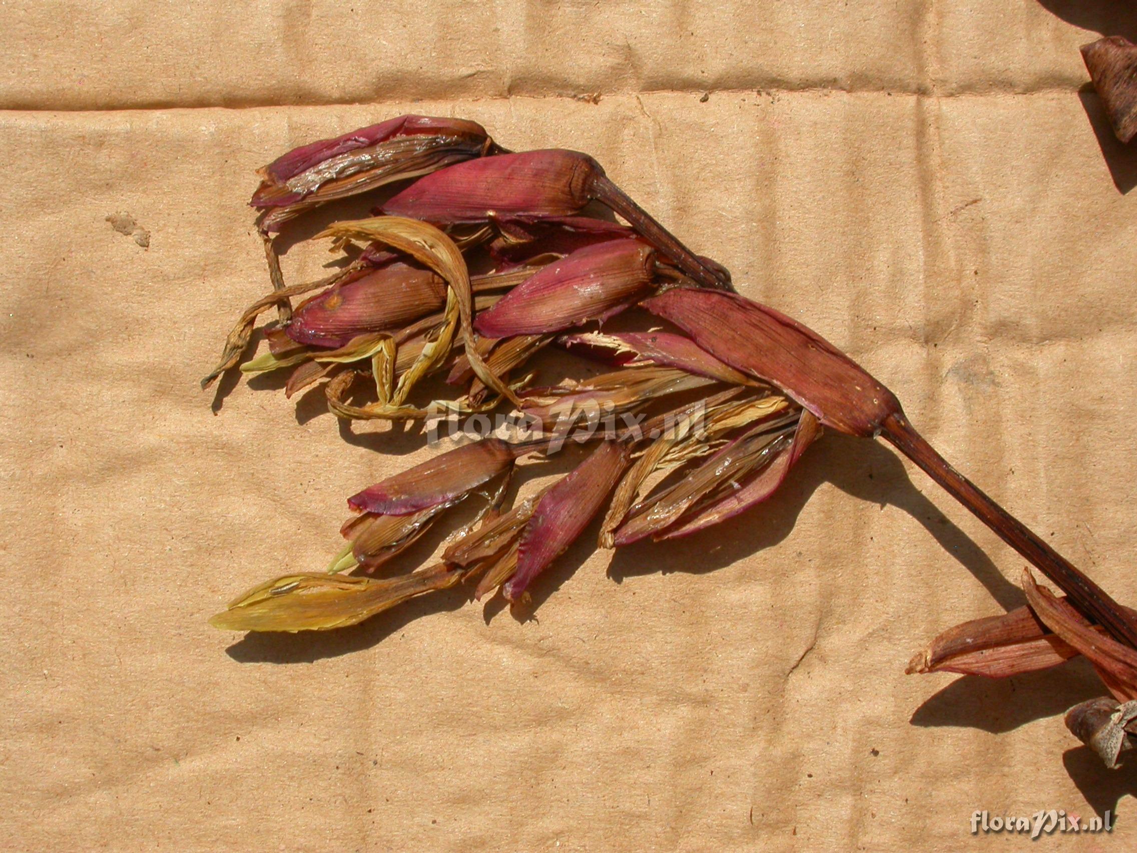 8189 - Bromeliads (Wild) - 2011-10-13(Dimension: 2302 x 1754 pixels - Counter: 13363) Mezobromelia fulgens L.B. Sm. ![]() Locality: Ecuador - Prov. of Zamora-Chinchipe, area of Estación Cientifica San Francisco (S 03°58“, W 79°04“ ), road Loja-Zamora, ca. 35 km from Loja; moist montane forest Photographer: Florian Werner Note: Col.: Werner, F.A. 2125 (05-11-2006) - Det.: W. Till (U Vienna) 2011 "infl. 1-1.5m long; peduncle, pedicel, bracts and calyx bright red, corolla large and yellow. Recollected as fw3124"