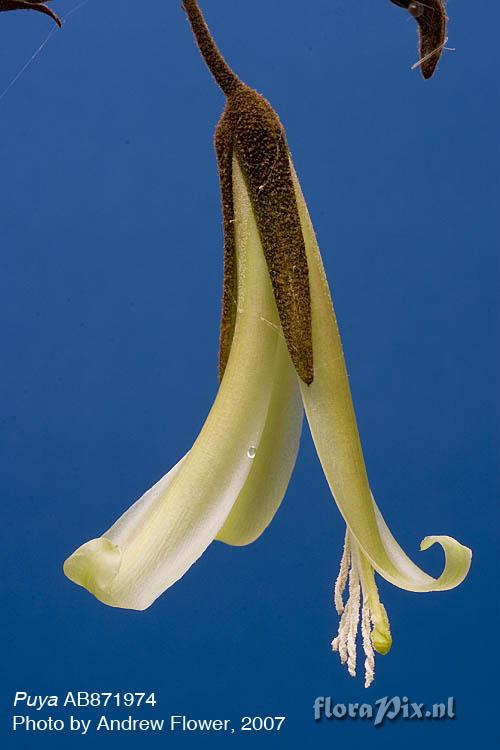 702 - Bromeliads (Garden) - 2007-05-14(Dimension: 530 x 800 pixels - Counter: 17108) Puya species, Bolivia AB871974 ![]() Photographer: Andrew Flower Note: grown from wild coll. seed ex German Bromeliad Society with label "Bolivien, 1996, 2200m, TK 6889. Seed sown May 2001.