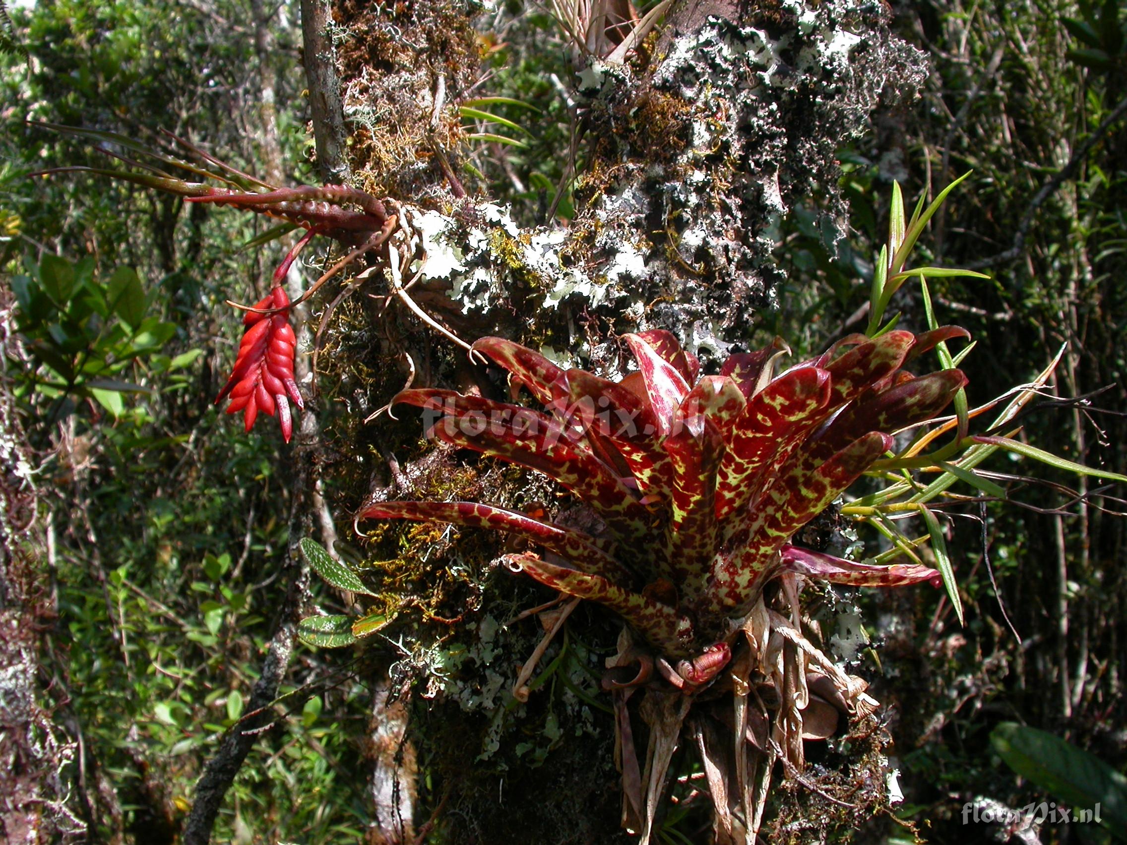 8092 - Bromeliads (Wild) - 2011-10-13(Dimension: 2302 x 1754 pixels - Counter: 4882) Racinaea undulifolia (Mez) H.Luther ![]() Locality: Ecuador - Prov. of Zamora-Chinchipe, area of Estación Cientifica San Francisco (S 03°58“, W 79°04“ ), road Loja-Zamora, ca. 35 km from Loja; moist montane forest Photographer: Florian Werner Note: (as Werner, F.A. 2410 ) - Det.: H. Luther (SEL) 2008 entire inflorescence bright brick-red.