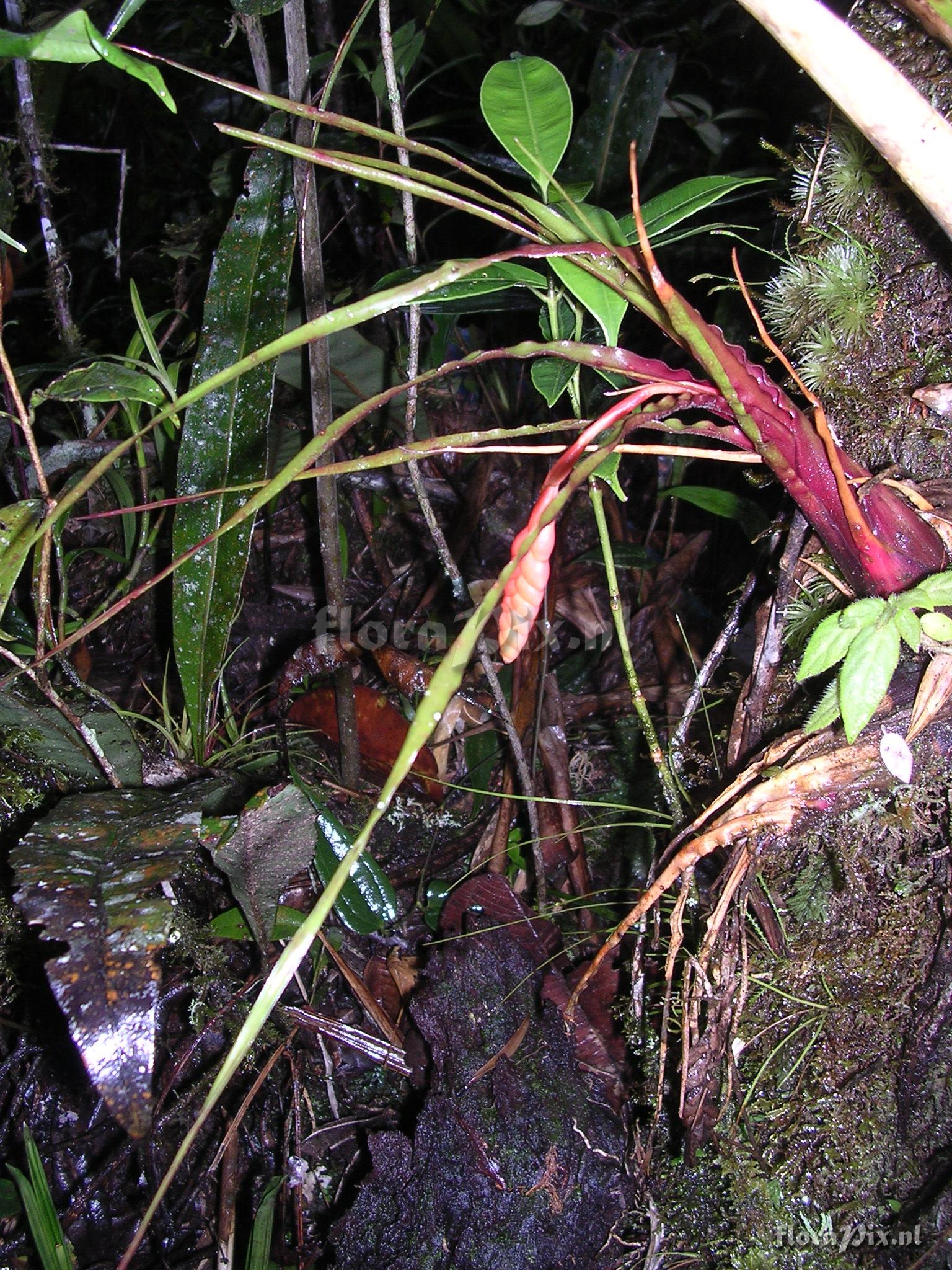 8872 - Bromeliads (Wild) - 2011-10-13(Dimension: 1566 x 2098 pixels - Counter: 6479) Racinaea undulifolia (Mez) H. Luther ![]() Locality: Ecuador - Prov. of Zamora-Chinchipe, area of Estación Cientifica San Francisco (S 03°58“, W 79°04“ ), road Loja-Zamora, ca. 35 km from Loja; moist montane forest Photographer: Florian Werner Note: (as Werner, F.A. 271 ) - Det.: J.M. Manzanares 2000 Epiphytic, bracts soft, intense orange