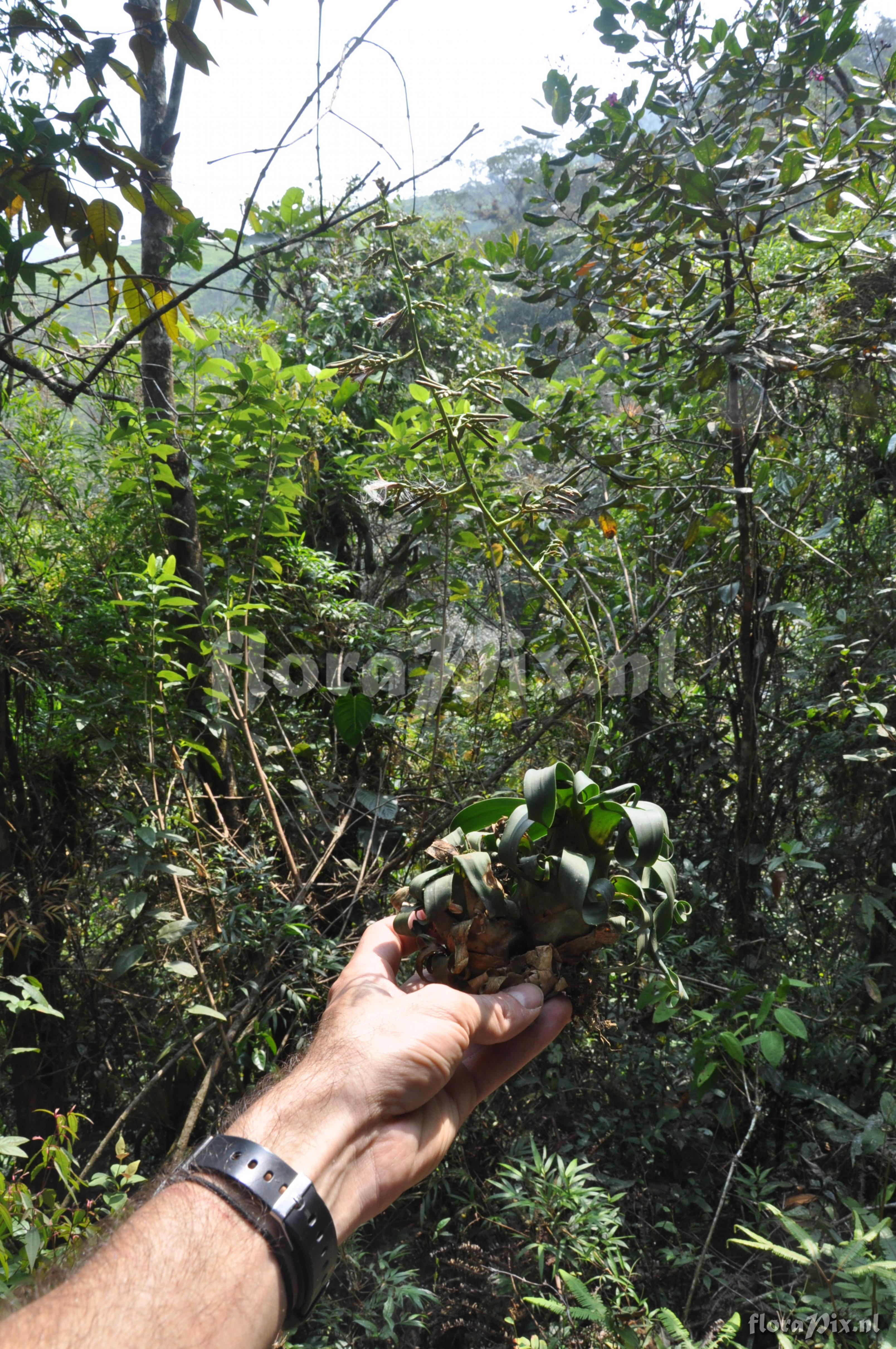 9211 - Bromeliads (Wild) - 2011-10-13(Dimension: 3246 x 2186 pixels - Counter: 10609) Racinaea cf. ropalocarpa (André) M.A. Spencer & L.B. Sm. ![]() Locality: Ecuador - Prov. of Zamora-Chinchipe, area of Estación Cientifica San Francisco (S 03°58´, W 79°04´ ), road Loja-Zamora, ca. 35 km from Loja; moist montane forest Photographer: Florian Werner Note: Col.: Werner, F.A. 3074 (11-09-2010) - Det.: W. Till (U Vienna) 2011 "in secondary scrub; one single specimen; never seen in the valley before. Leaves soft, succulent, of spotless opaque green (dark red pigmentation only on inner side of leaf base), and terminally curled by 720° if not much more."