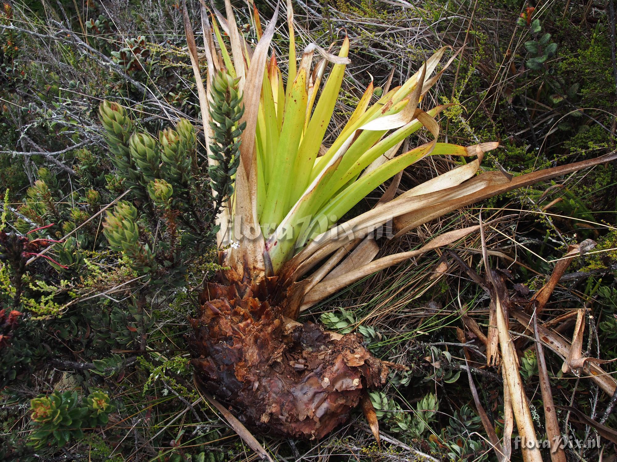 13601 - Bromeliads (Wild) - 2018-02-13(Dimension: 2030 x 1550 pixels - Counter: 6148) Tillandsia unknown3 ![]() Locality: Ecuador - S03 15' 46.45" W79 03' 31.19", Elevation 3065 meters. Growing in scrub trees (probably not original vegetation) terrestrially on the ground. Note the enlarge stem formed by offsets. Also growing in the same locale T. stenoura and T. walteri. Plants were approximately 135 to 140cm tall with inflorescence. Note the very colorful new young plant growing out in the open. Too bad they don't keep this attractive a foliage. Photographer: Jerry Raack Note: This is an offset pulled from a clump growing on the ground. This was a very inflated stem, and the plants were fully rooted in the ground. Identification: