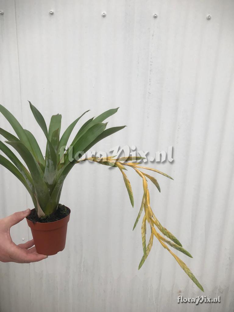 Note: Here are two images from Jeffrey Kent's greenhouses of what I believe is the same species. Does yours have any open flowers yet? (Sent: brom-l@science.uu.nl)