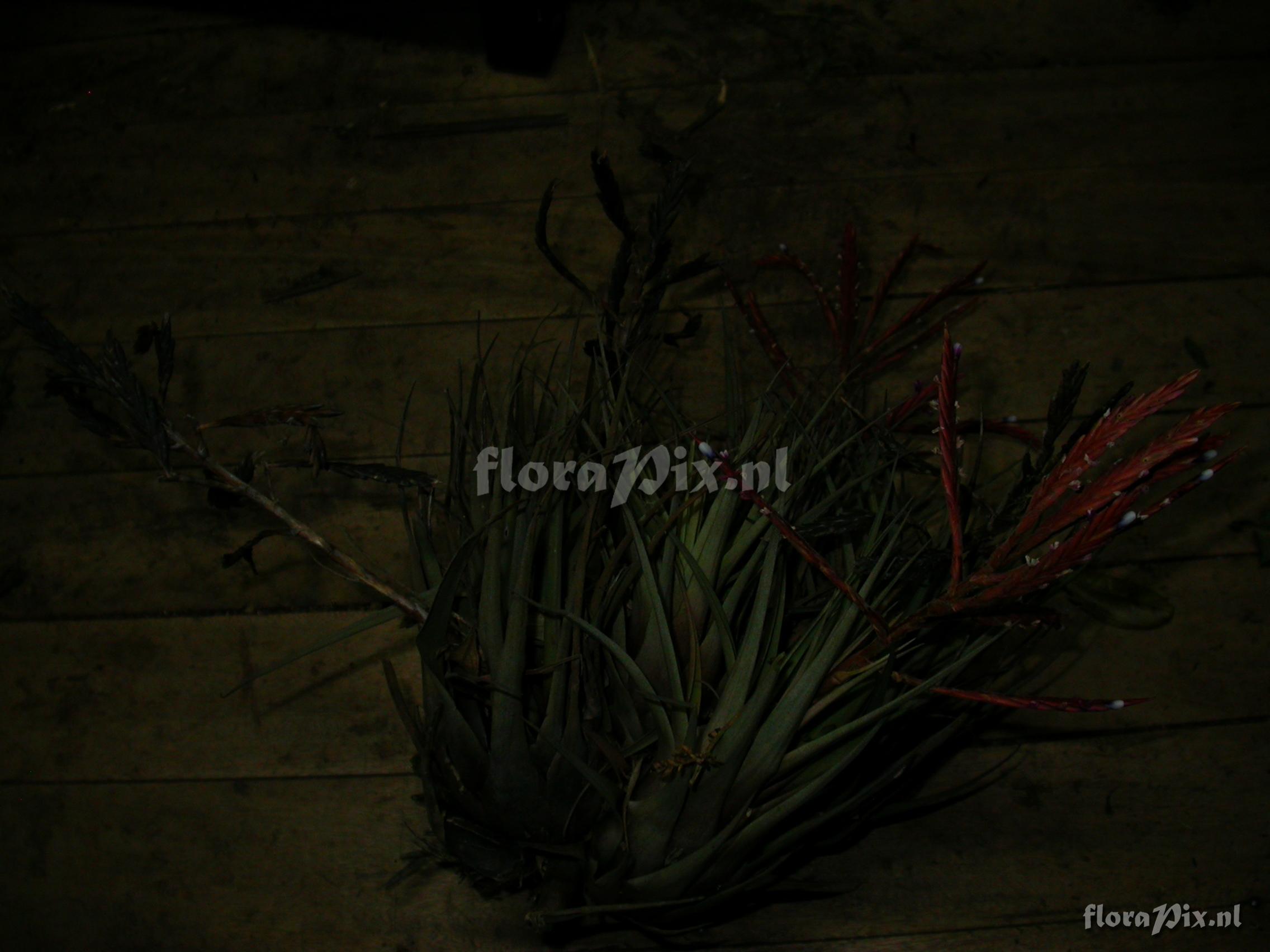 8293 - Bromeliads (Wild) - 2011-10-13(Dimension: 2302 x 1754 pixels - Counter: 12942) Tillandsia heterandra (André) L.B. Sm. ![]() Locality: Ecuador - Prov. of Zamora-Chinchipe, area of Estación Cientifica San Francisco (S 03°58´, W 79°04´ ), road Loja-Zamora, ca. 35 km from Loja; moist montane forest Photographer: Florian Werner Note: Col.: Werner, F.A. 3081 (11-09-2010) - Det.: W. Till (U Vienna) 2011 "only one large genet; bracts red, the tube-forming petals dark blue basally and white distally."