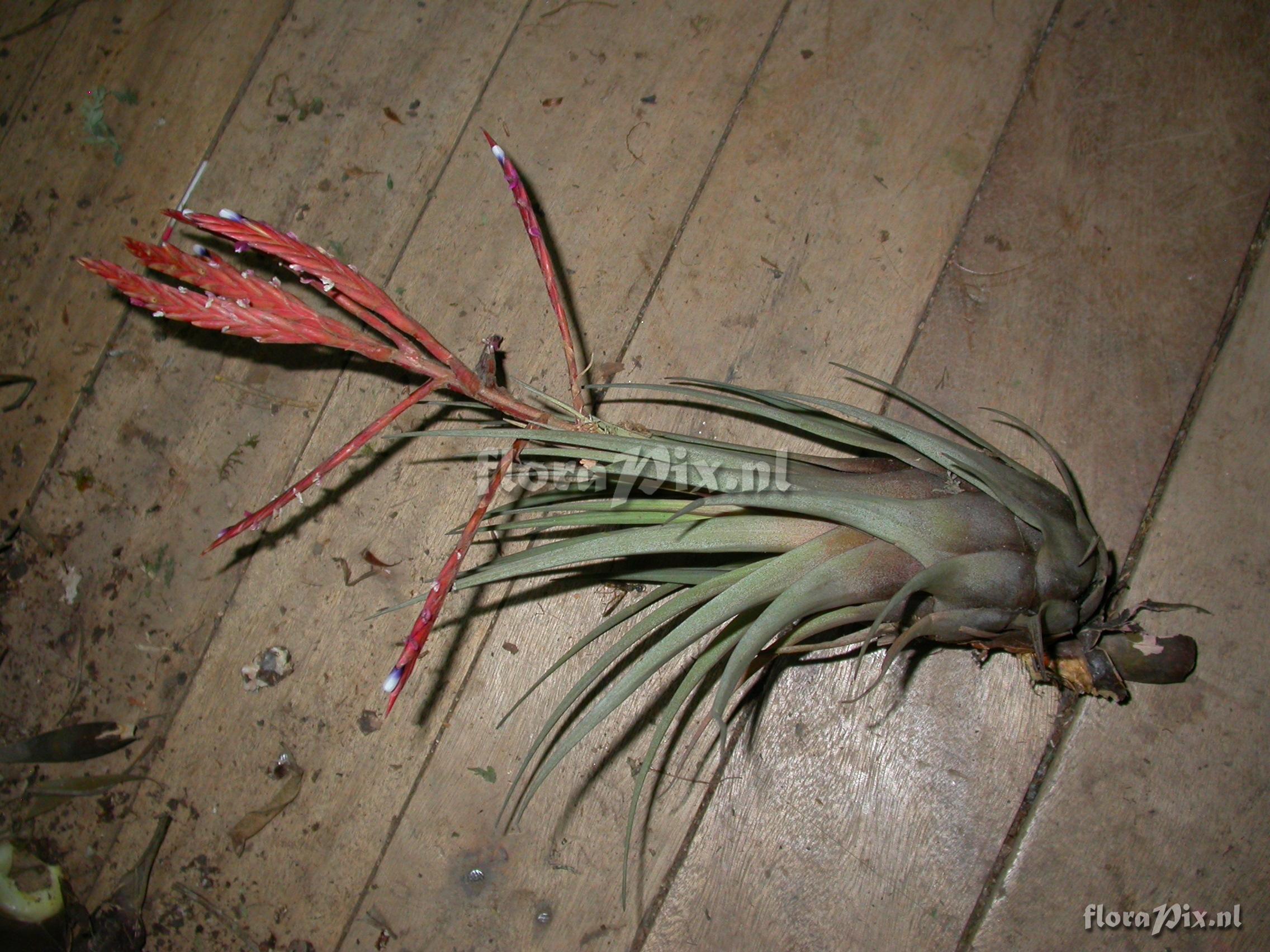 8304 - Bromeliads (Wild) - 2011-10-13(Dimension: 2302 x 1754 pixels - Counter: 9879) Tillandsia heterandra (André) L.B. Sm. ![]() Locality: Ecuador - Prov. of Zamora-Chinchipe, area of Estación Cientifica San Francisco (S 03°58´, W 79°04´ ), road Loja-Zamora, ca. 35 km from Loja; moist montane forest Photographer: Florian Werner Note: Col.: Werner, F.A. 3081 (11-09-2010) - Det.: W. Till (U Vienna) 2011 "only one large genet; bracts red, the tube-forming petals dark blue basally and white distally."