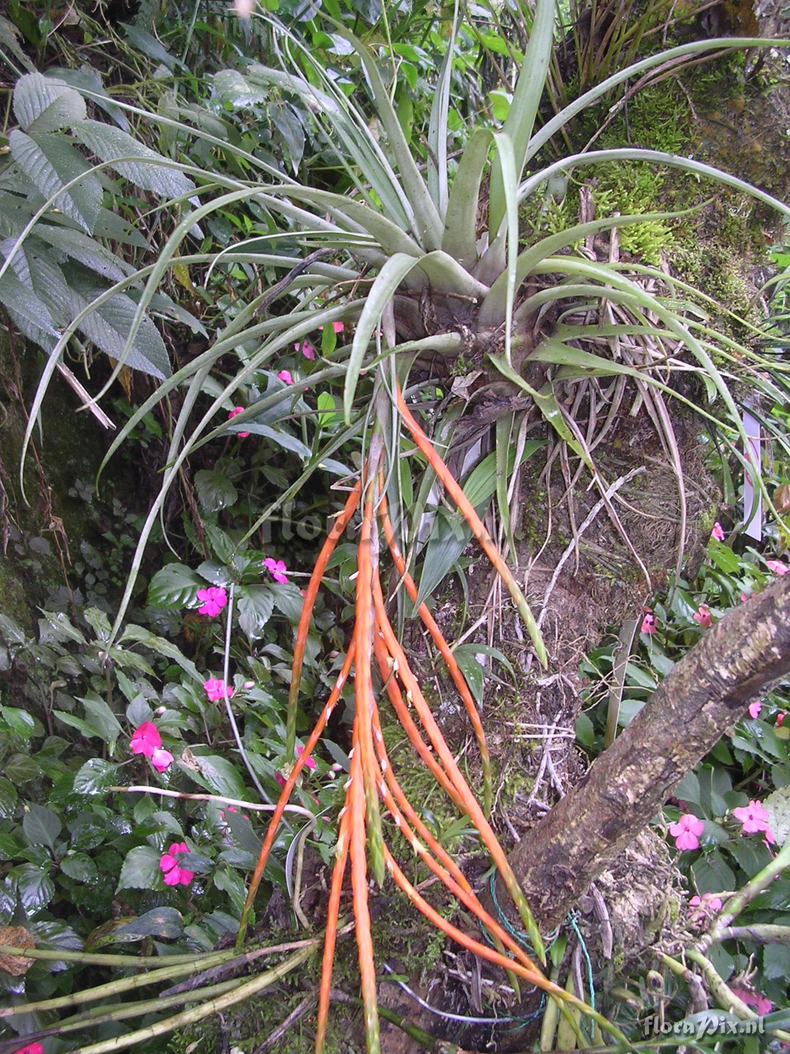 8544 - Bromeliads (Wild) - 2011-10-13(Dimension: 1566 x 2098 pixels - Counter: 10131) Tillandsia barthlottii Rauh ![]() Locality: Ecuador - Prov. of Zamora-Chinchipe, area of Estación Cientifica San Francisco (S 03°58´, W 79°04´ ), road Loja-Zamora, ca. 35 km from Loja; moist montane forest Photographer: Florian Werner Note: Col.: Werner, F.A. 1688 (17-07-2005) - Det.: J.M.Manzanares flower bracts bright orange, tepals and filaments wool-white.