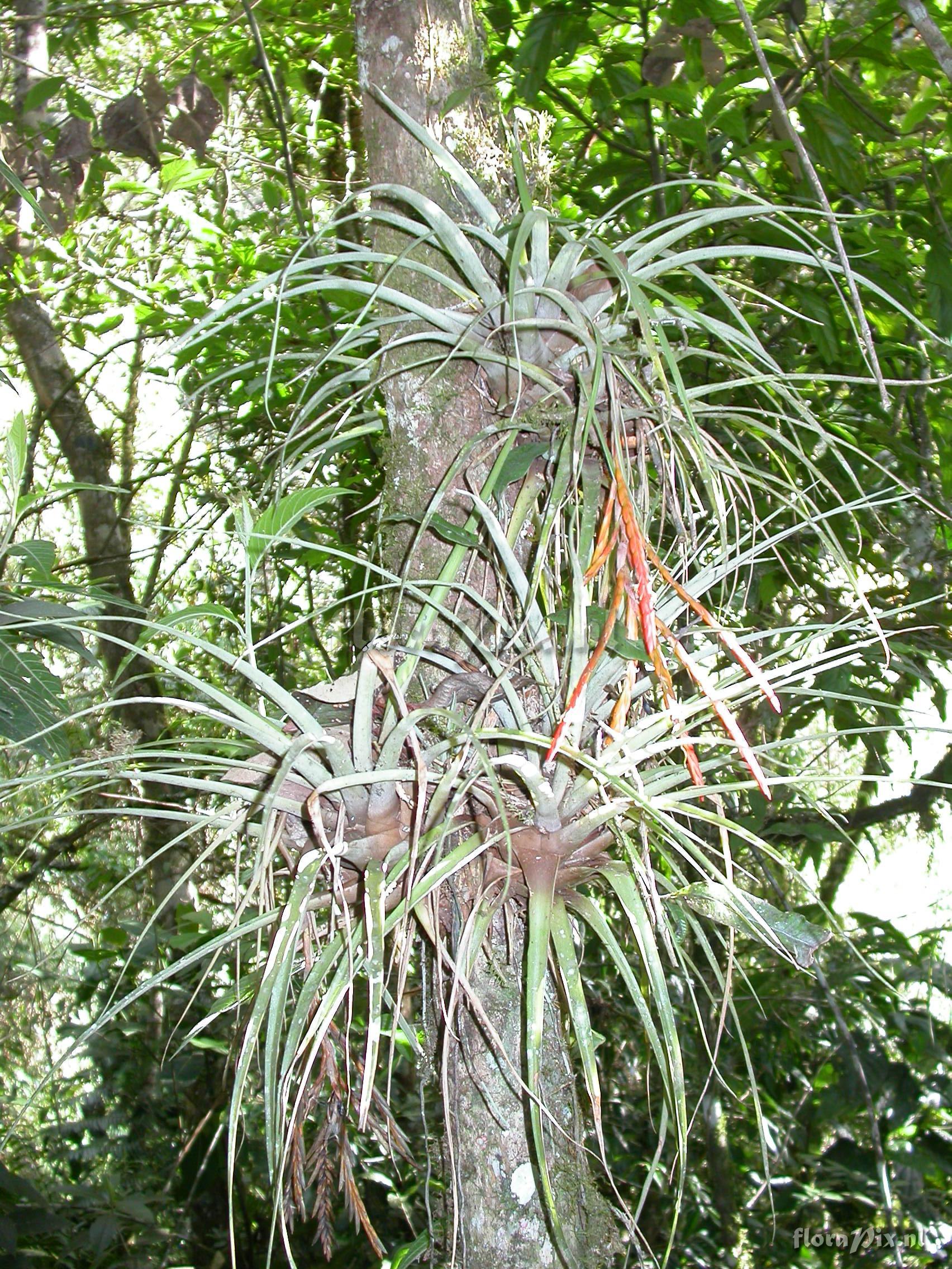 8593 - Bromeliads (Wild) - 2011-10-13(Dimension: 1734 x 2322 pixels - Counter: 10304) Tillandsia barthlottii Rauh ![]() Locality: Ecuador - Prov. of Zamora-Chinchipe, area of Estación Cientifica San Francisco (S 03°58“, W 79°04“ ), road Loja-Zamora, ca. 35 km from Loja; moist montane forest Photographer: Florian Werner Note: Col.: Werner, F.A. 2622 (28-09-2008) - Det.: W. Till (U Vienna) 2011 petals wool-white, bracts bright orange. 7 cm long lumbricid worm in leaf axil (present to Doro).