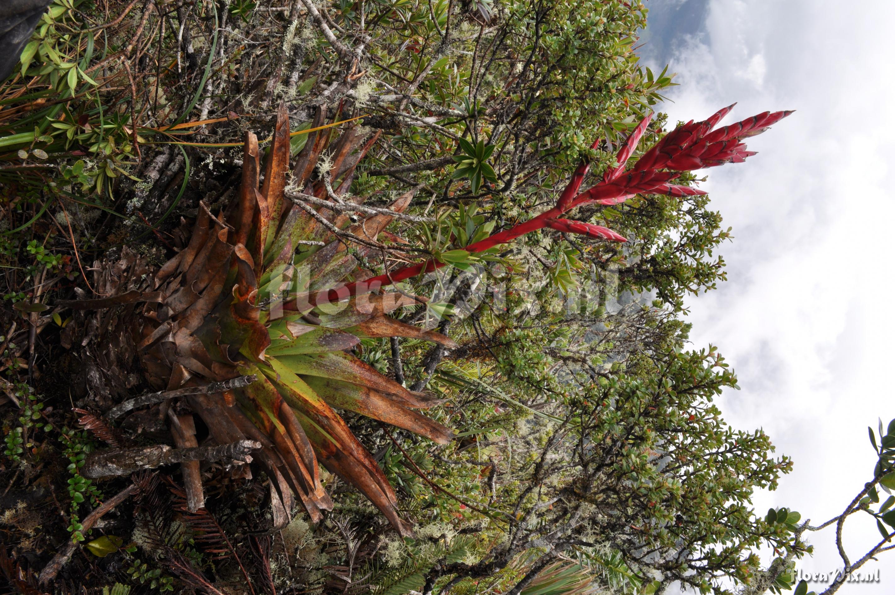 9116 - Bromeliads (Wild) - 2011-10-13(Dimension: 2878 x 4338 pixels - Counter: 10347) Tillandsia aff. fendleri ![]() Locality: Ecuador - Province of Loja, Parque Nacional Podocarpus, Cajanuma Photographer: Florian Werner Note: Col.: Werner, F.A. 3123 (09-04-2011) - Det.: F.A. Werner plant terrestrial, but more commonly seen epiphytic. Deep, high storage-capacity- tank. Leaves consp. waxy abaxially, tips spiky-acute. Pedicel & bracts intense purplish dark red, flowers purple apparently (según Nelson). CF. fw3115!