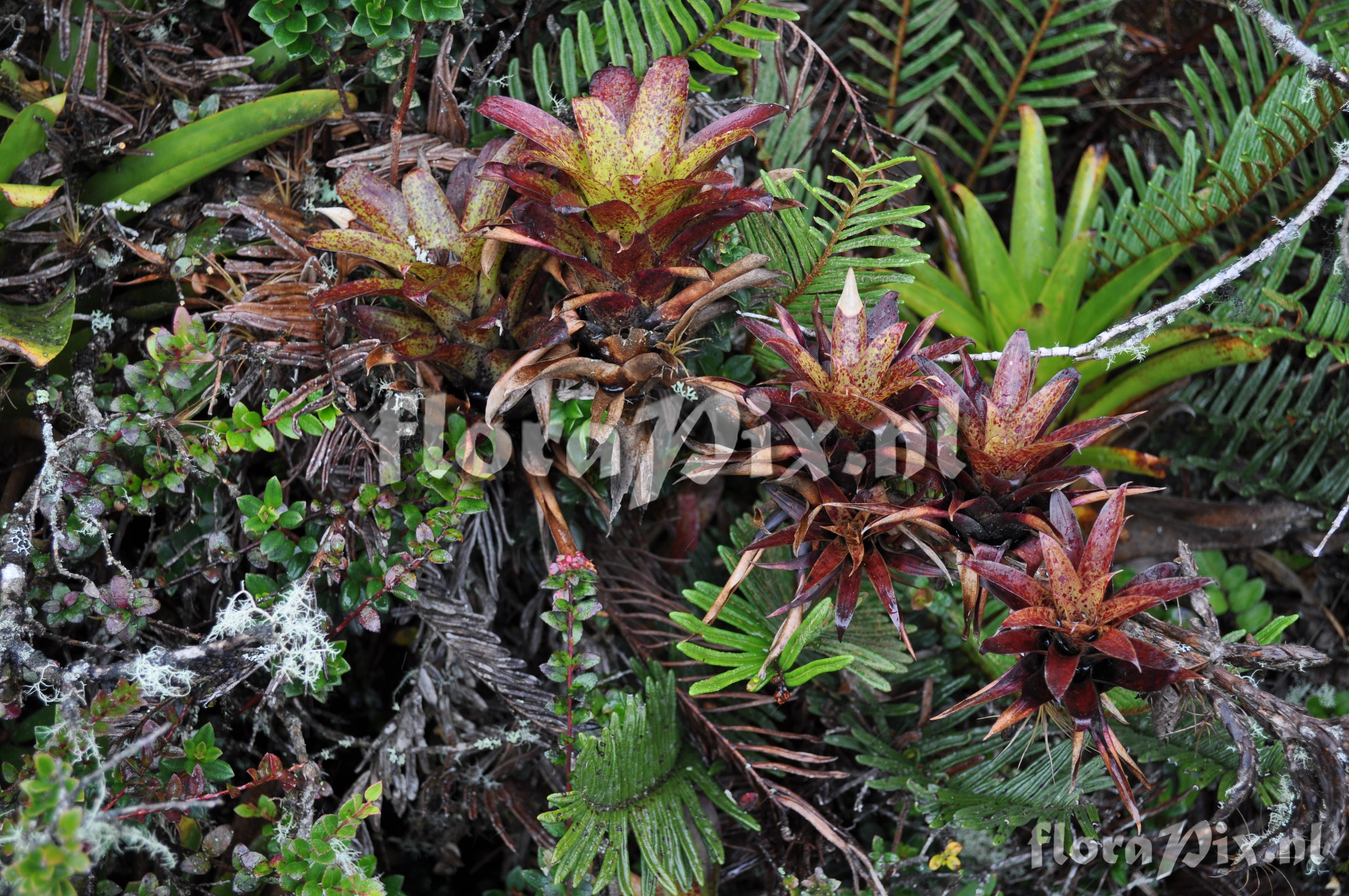 9123 - Bromeliads (Wild) - 2011-10-13(Dimension: 4318 x 2898 pixels - Counter: 10868) Tillandsia ![]() Locality: Ecuador - Prov. of Zamora-Chinchipe, area of Estación Cientifica San Francisco (S 03°58´, W 79°04´ ), road Loja-Zamora, ca. 35 km from Loja; moist montane forest Photographer: Florian Werner Note: Col.: Werner, F.A. 3125 (09-04-2011) "common; strictly terrestrial; high water storage capacity regarding shortness of (the many) leaves; leaf tips rolled up; infl. erect, red, ca. 1-1.3m tall (petals purple); Young plants routinely developing on old fruits eventually drop off and regularly just keep growing. Hatts off."