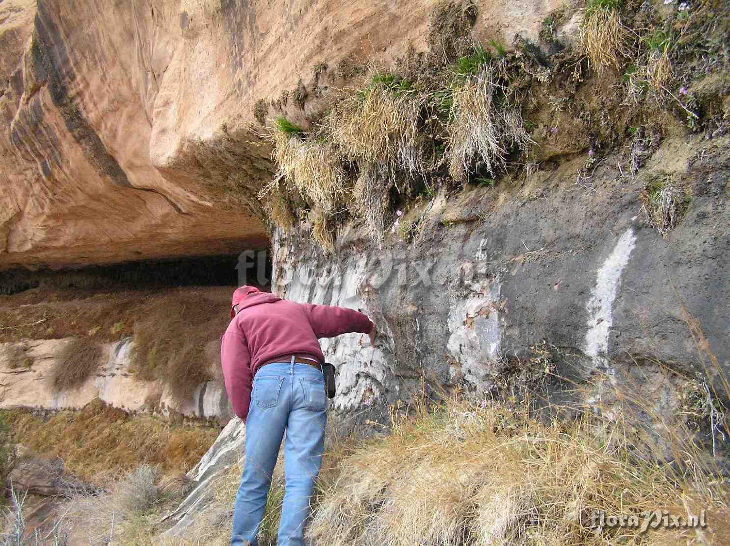 3073 - AlpenPix (Wild) - 2011-04-13(Dimension: 1517 x 1163 pixels - Counter: 7896) Primula specuicola habitat ![]() Locality: USA - Utah & Colorado - Canyonlands area of southeastern Utah Photographer: Jane Hendrix Note: Primula specuicola (Cave Primrose) has a special habitat in the hanging gardens that have established themselves in moist fractures in red sandstone. Just above Klaus's right hand is one of these lovely plants in full bloom. (Sent: Alpine-l@science.uu.nl) Identification:
