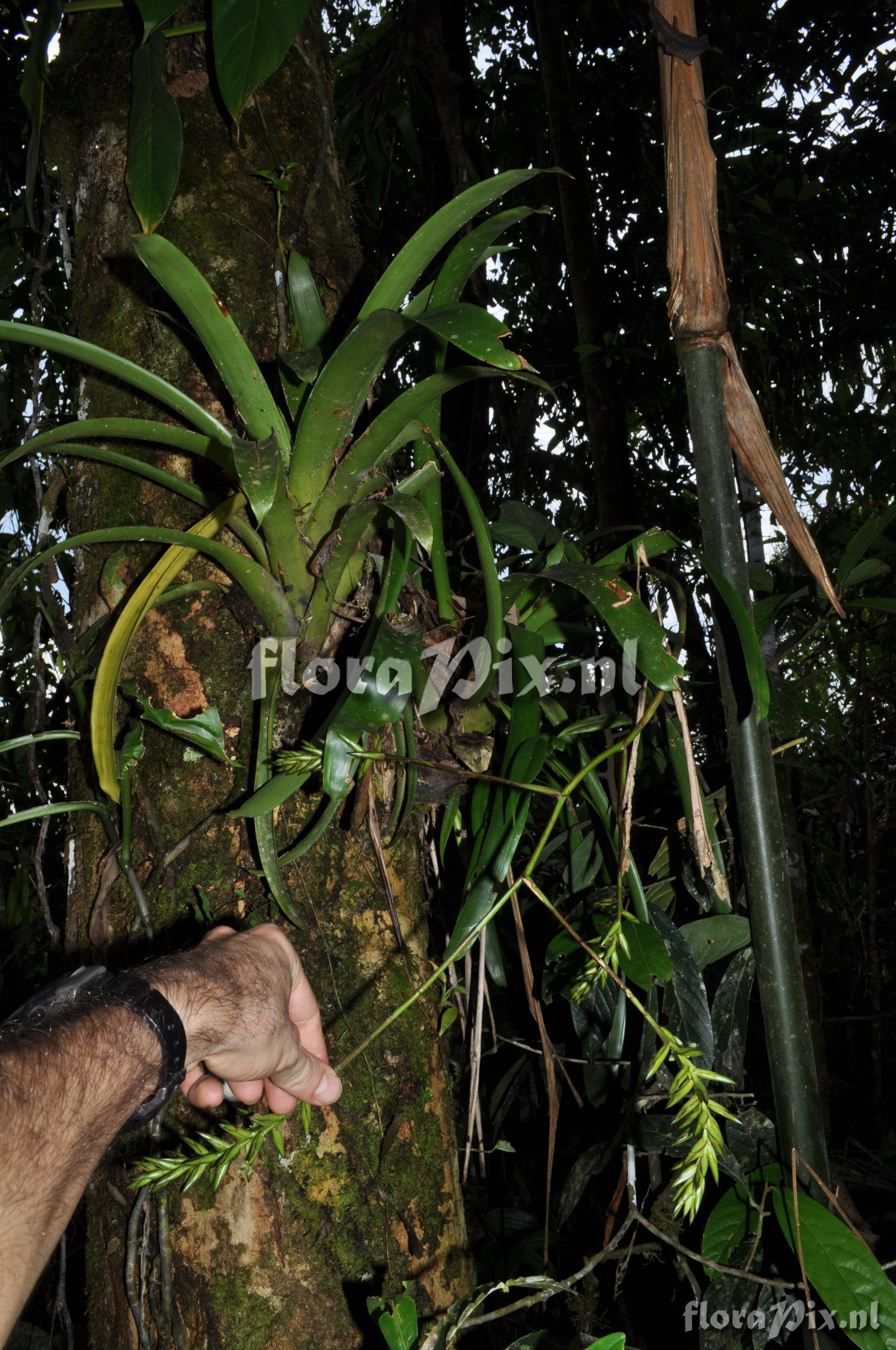 Verzamel locatie: Ecuador - Fotograaf: Florian Werner Opmerking: Col.: Werner, F.A. 3105 (30-01-2011) - Det.: W. Till (U Vienna) 2011 "petals white; this species has a smoll, compact, tillandsia-like tank and (also) grows high up in the canopy. Also common at Bombuscaro. Tambien con nosotros: Jaime Pena, Juan-Carlos Sanchez, Nelson Jaramillo."